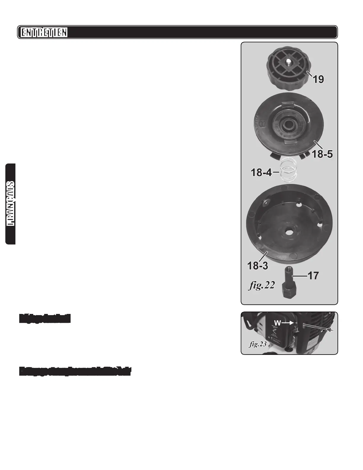 Réglez la vis de butée de l’obturateur (W, g.23) sur la timonerie d’accélérateur