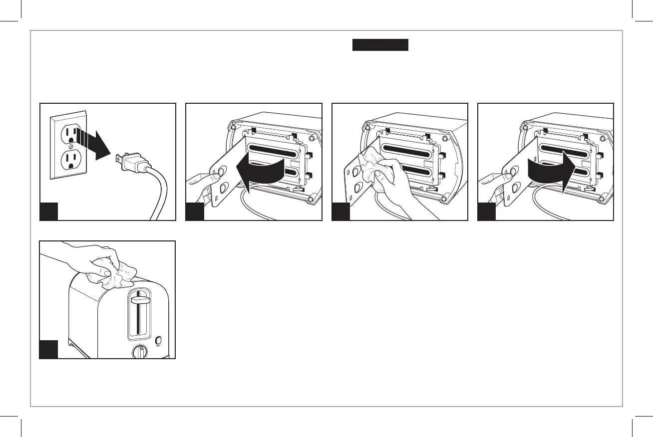 Your toaster should be cleaned regularly for best performance and long life. Regular cleaning will also reduce the risk of fire hazard.