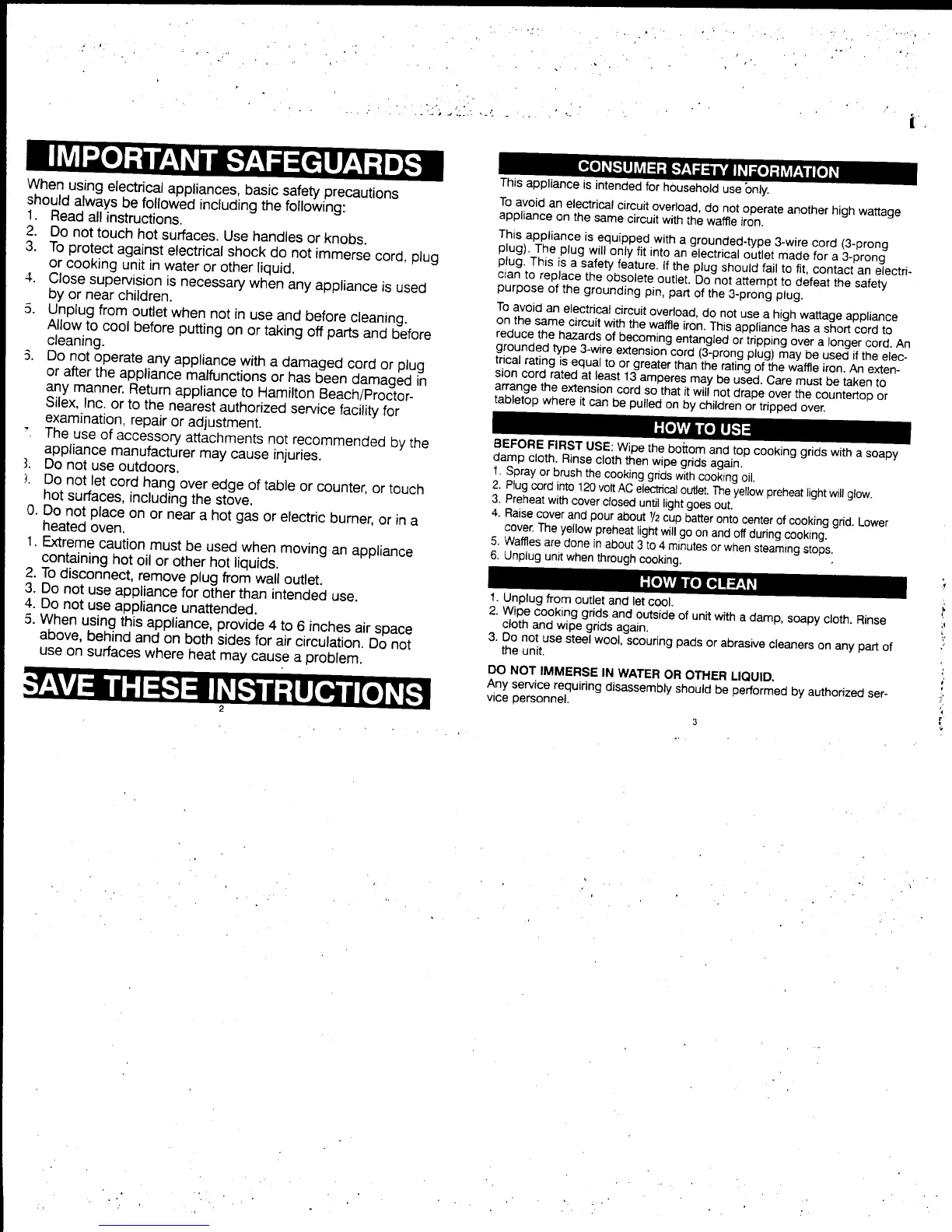 Proctor-Silex 26500 - Important Safeguards; Consumer Safety Information; How to Use