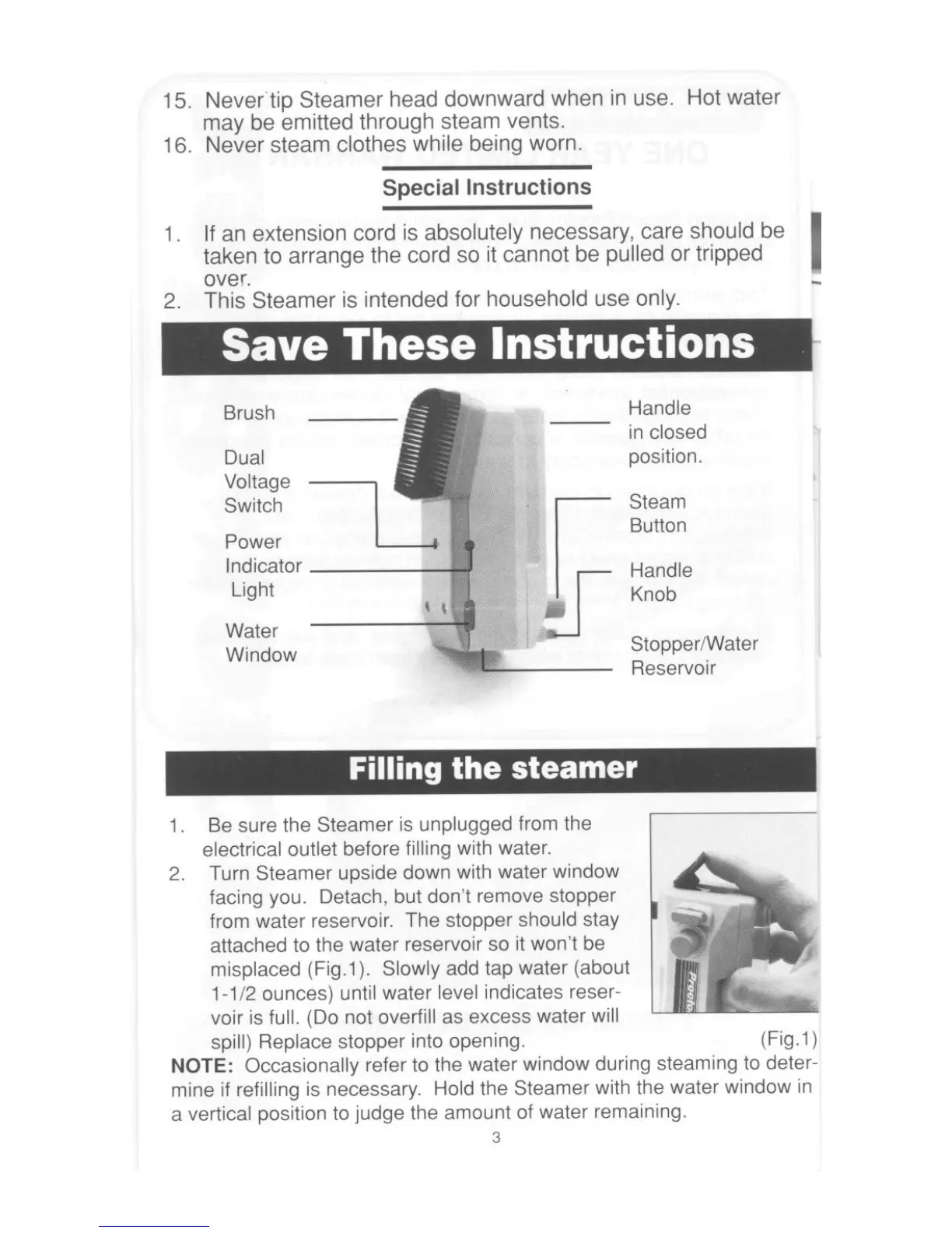 Proctor-Silex E1131 - Special Instructions; Filling the Steamer