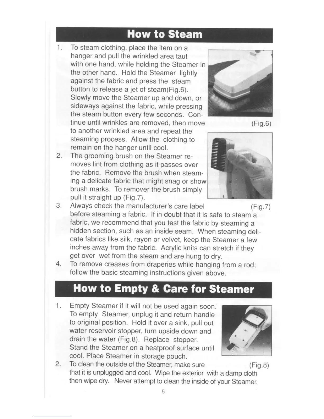 Proctor-Silex E1131 - How to Steam; How to Empty and Care for Steamer