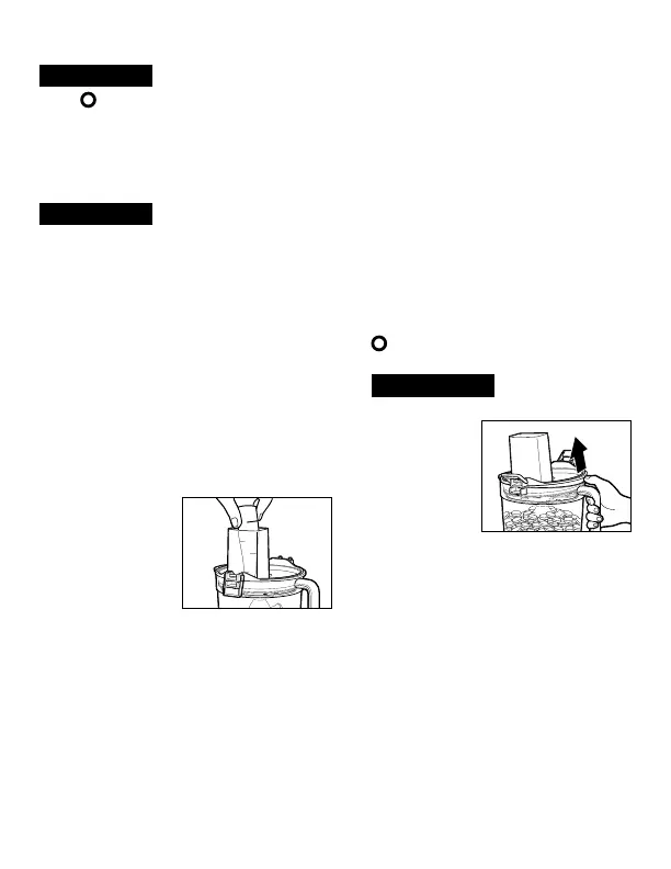Laceration Hazard. Always use food pusher to feed food into the chute. Never