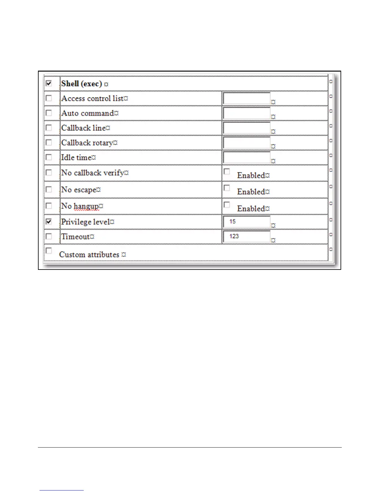 Figure 4-5. The Shell Section of the TACACS+ Server User Setup