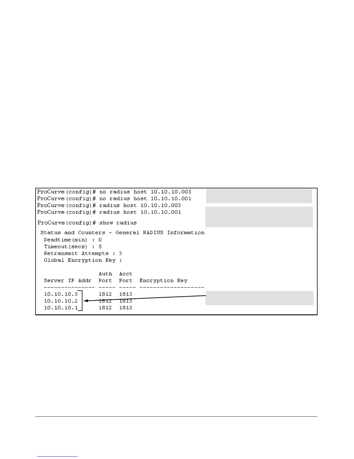 the RADIUS server list.