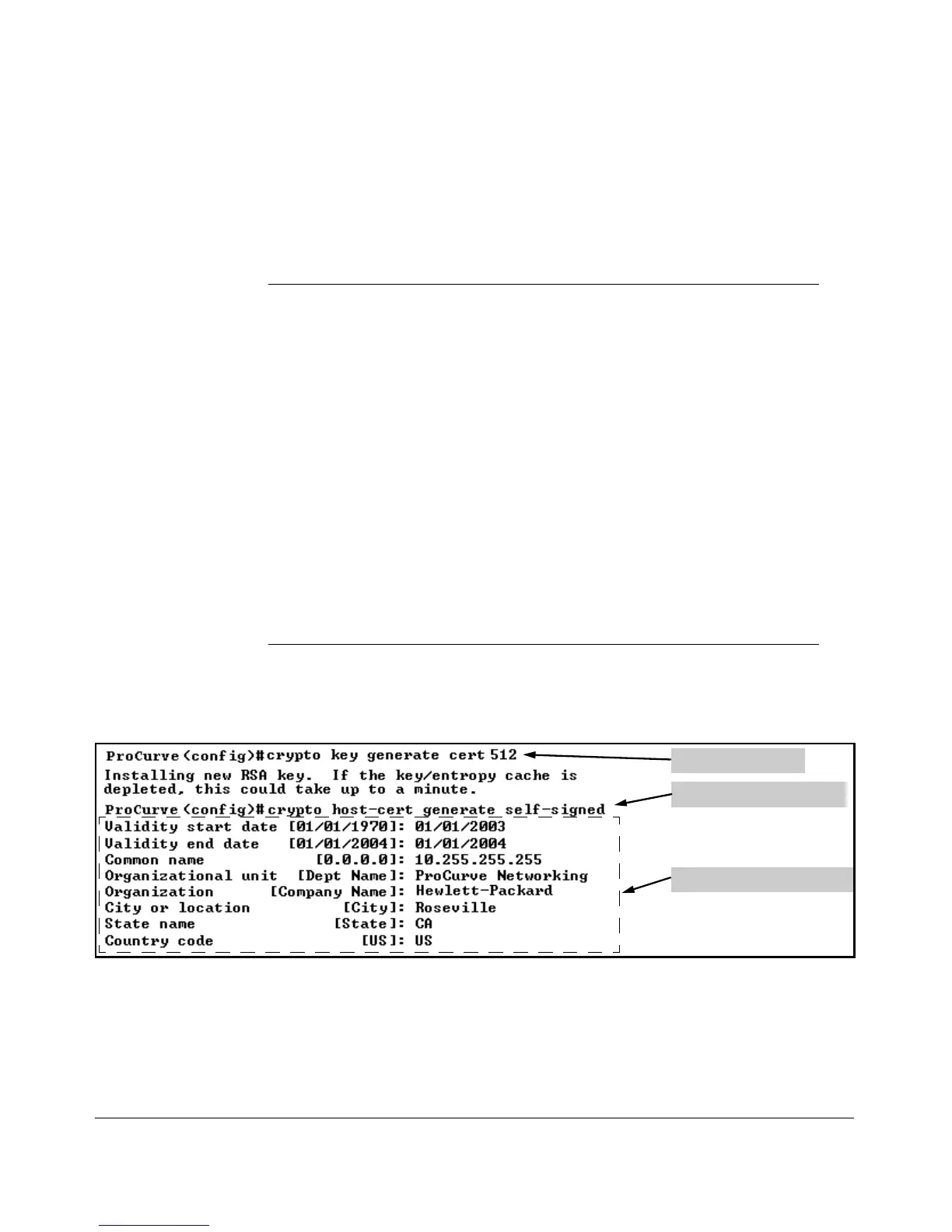 Figure 8-3. Example of Generating a Self-Signed Server Host certificate on the CLI for the Switch.