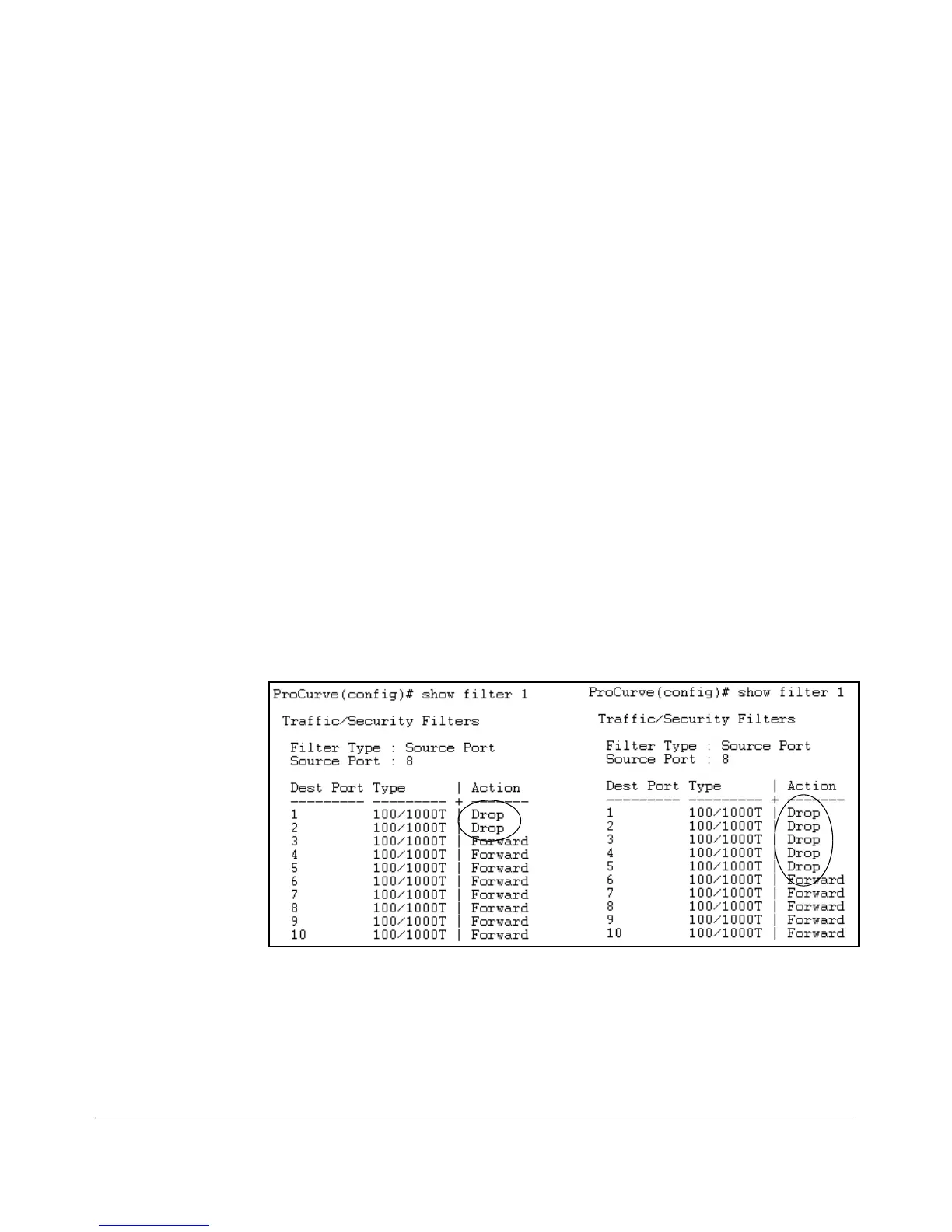 existing filter. For example, suppose you configure a filter to drop traffic
