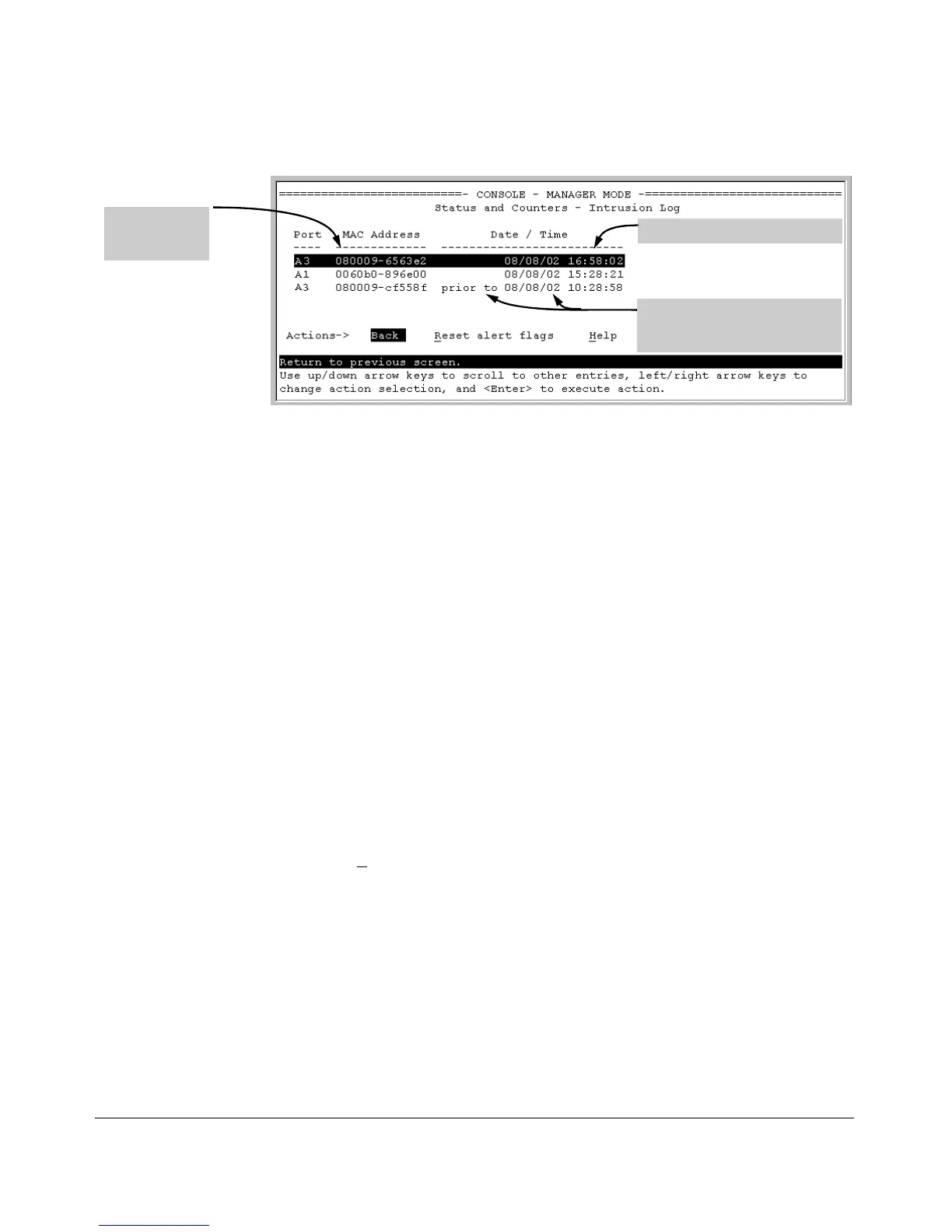 the intrusion occurred (port A3 in this example). (Because the Intrusion Log
