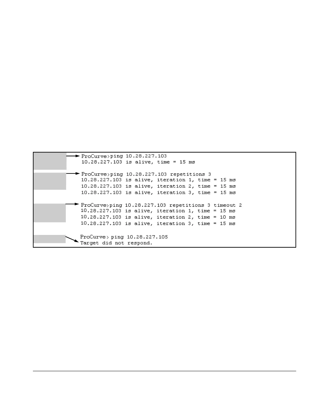 Ping Tests. You can issue single or multiple ping tests with varying repeti-
