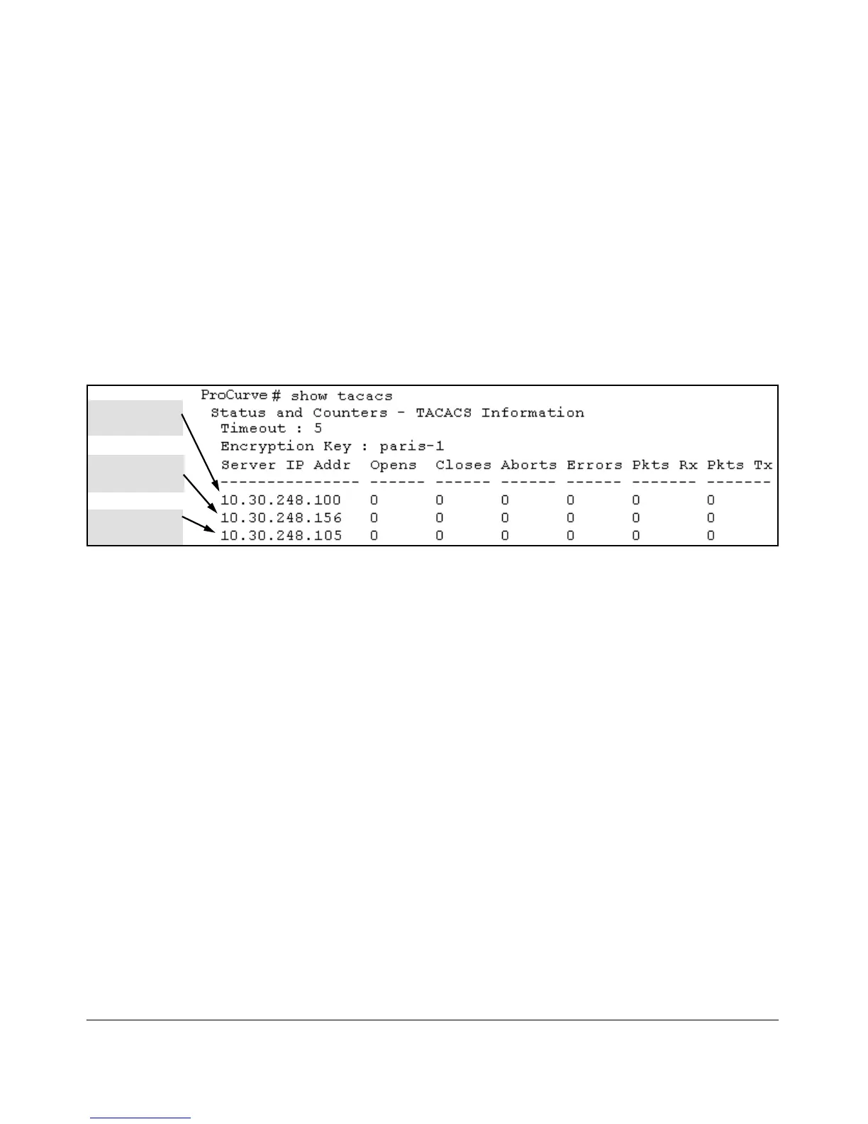 Figure 4-3. Example of the Switch’s TACACS+ Configuration Listing