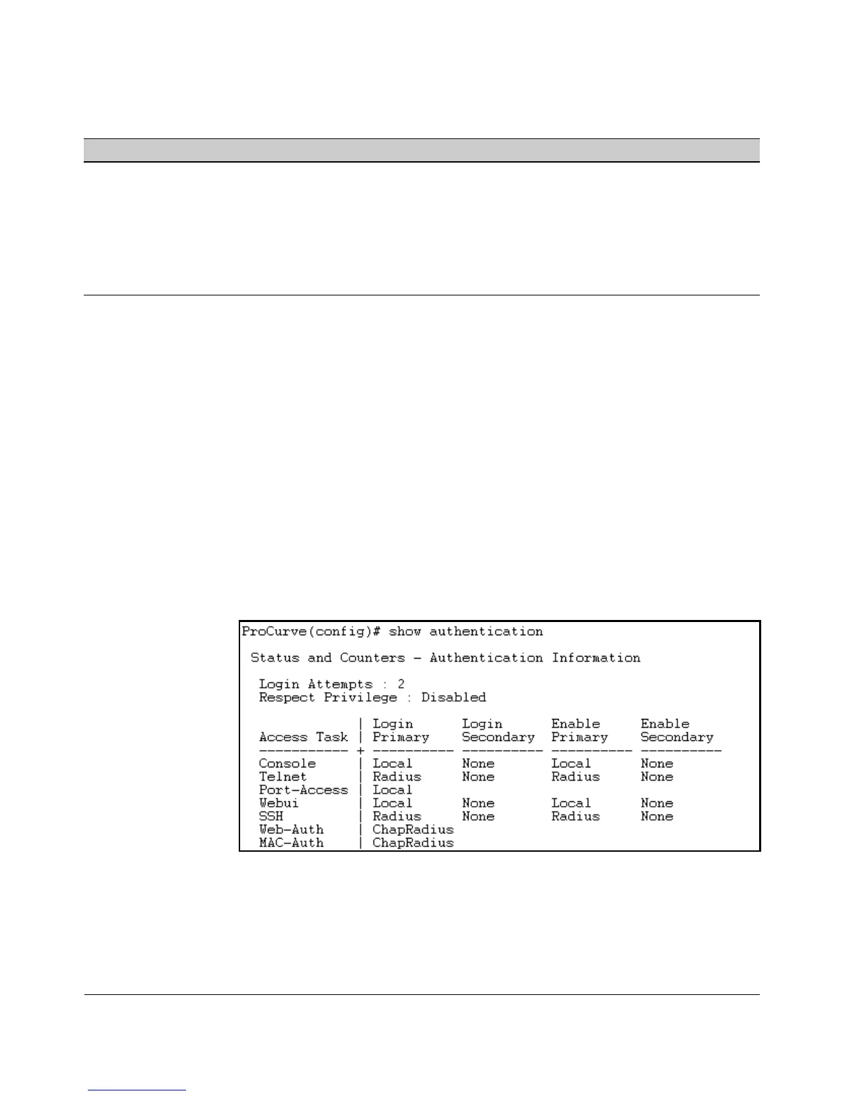 Syntax: show authentication