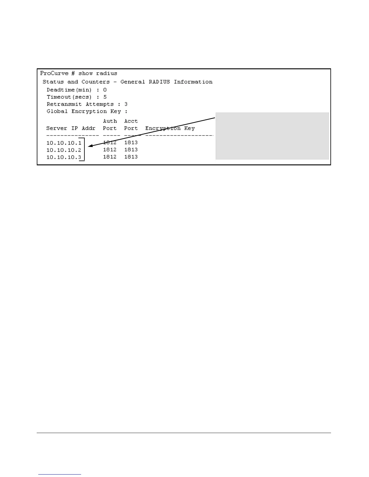 RADIUS server IP addresses listed in the order