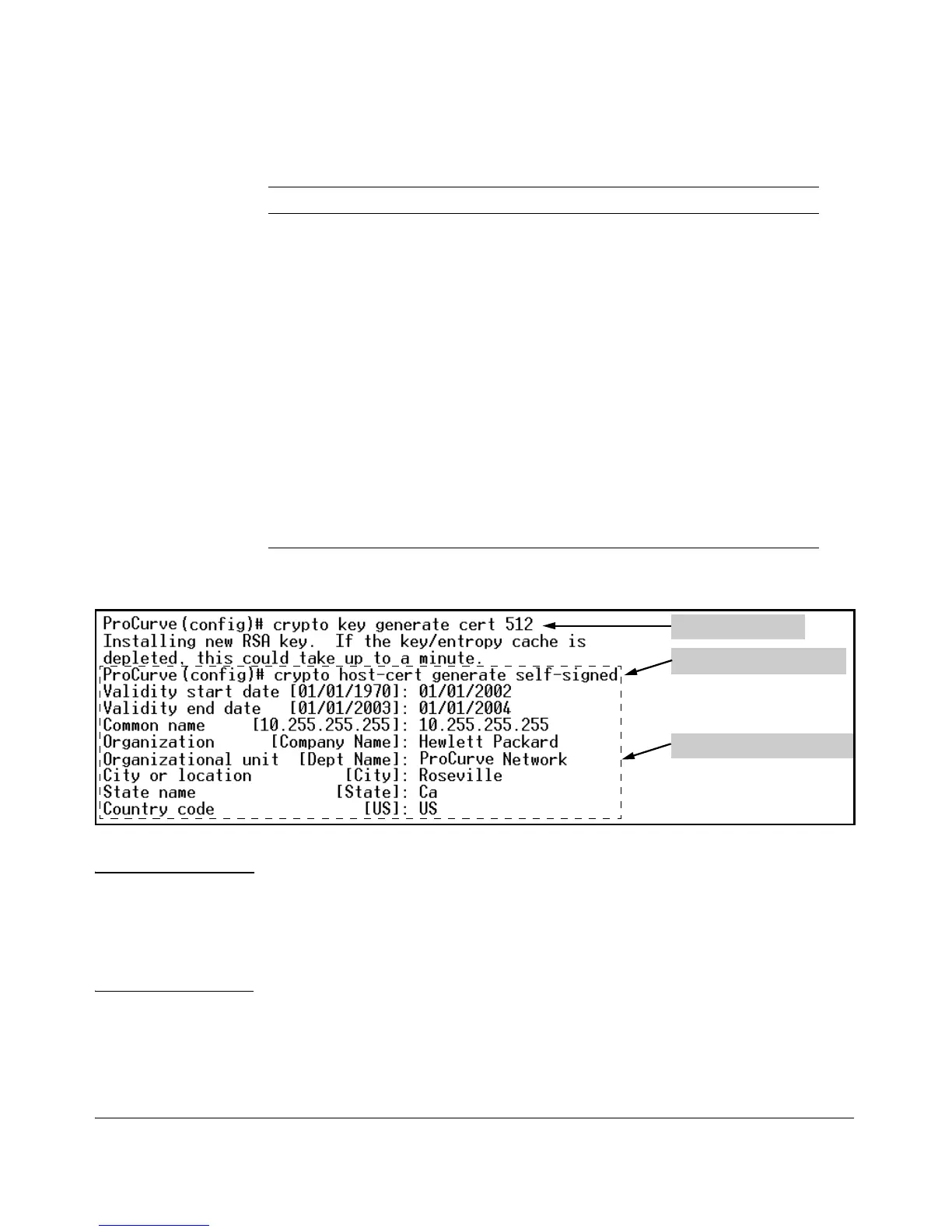 Figure 7-3. Example of Generating a Self-Signed Server Host certificate on the CLI for the Switch.