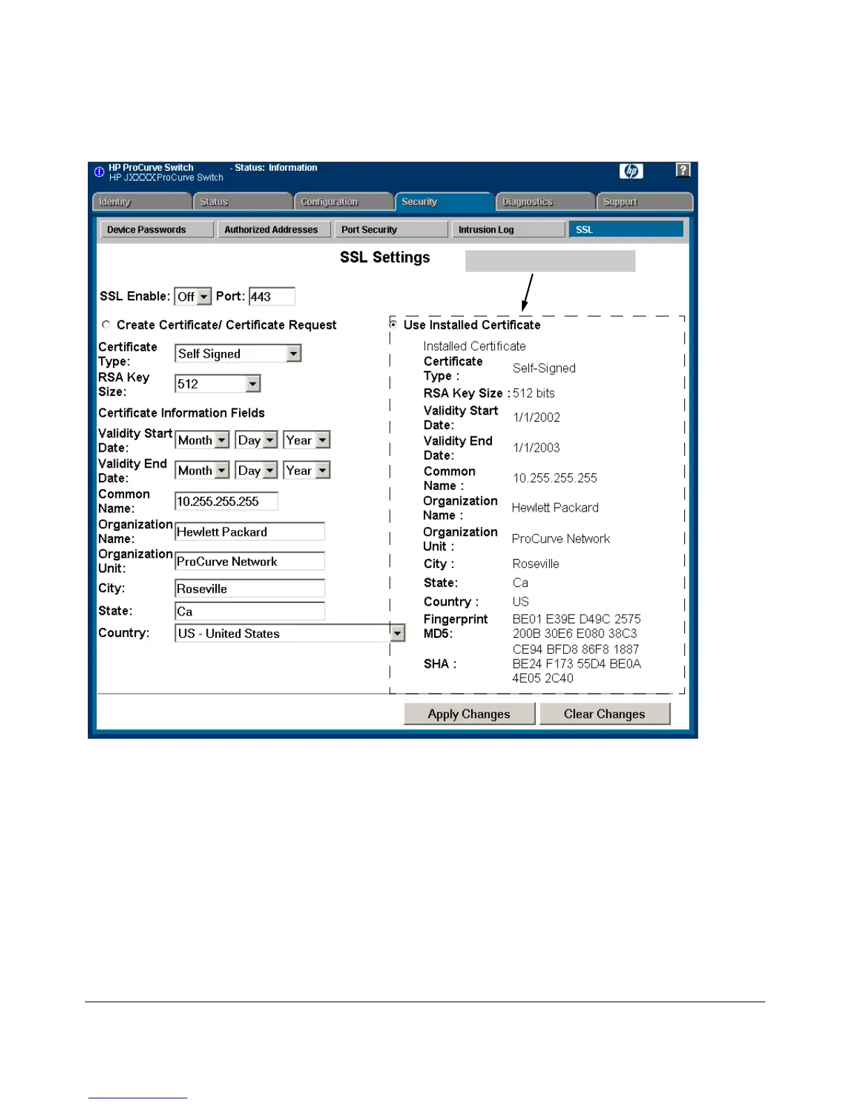 Figure 7-6. Web browser Interface showing current SSL Host Certificate