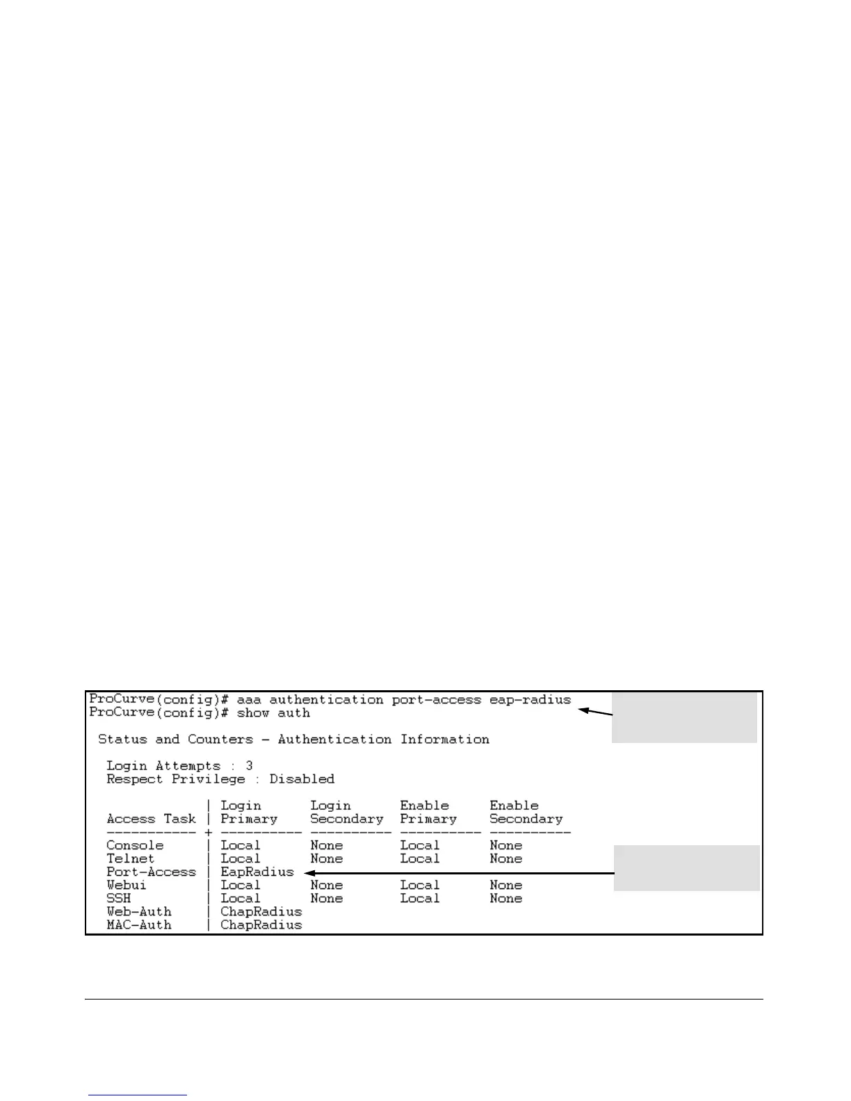 Syntax: aaa authentication port-access <chap-radius |eap-radius | local>