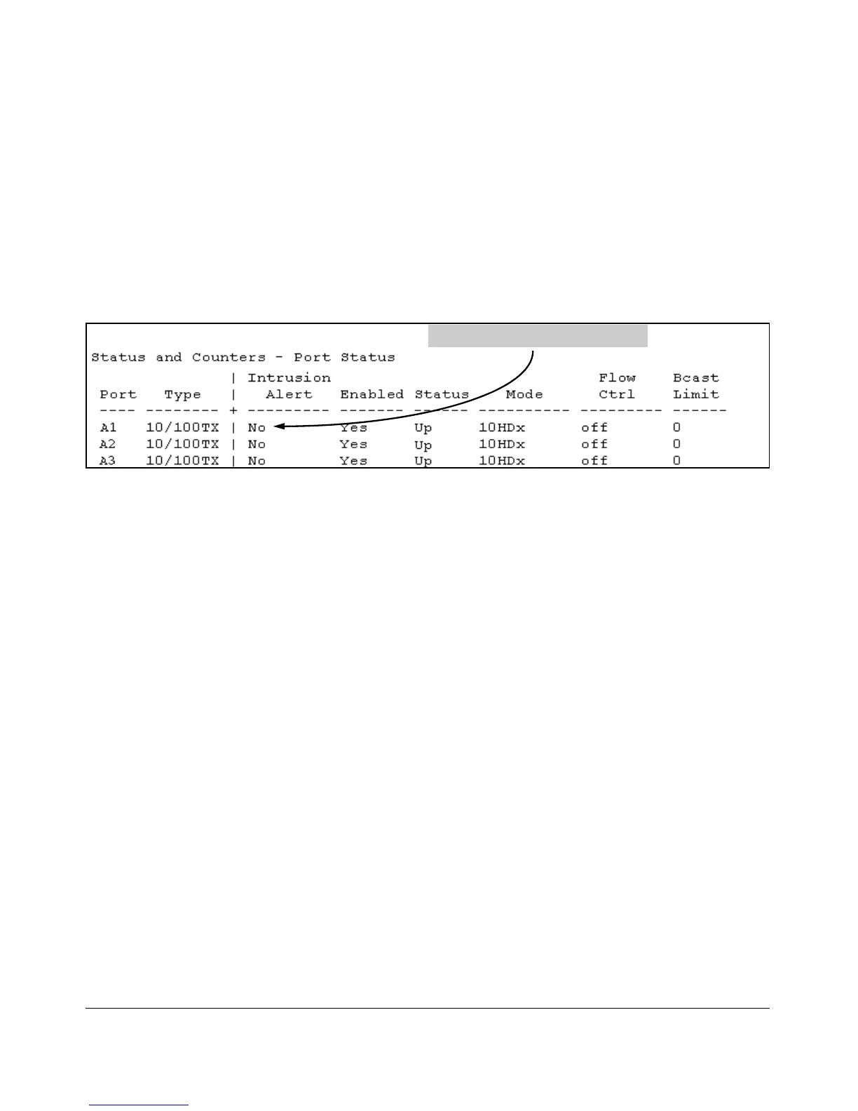 will see that the Intrusion Alert entry for port A1 has changed to “No”.