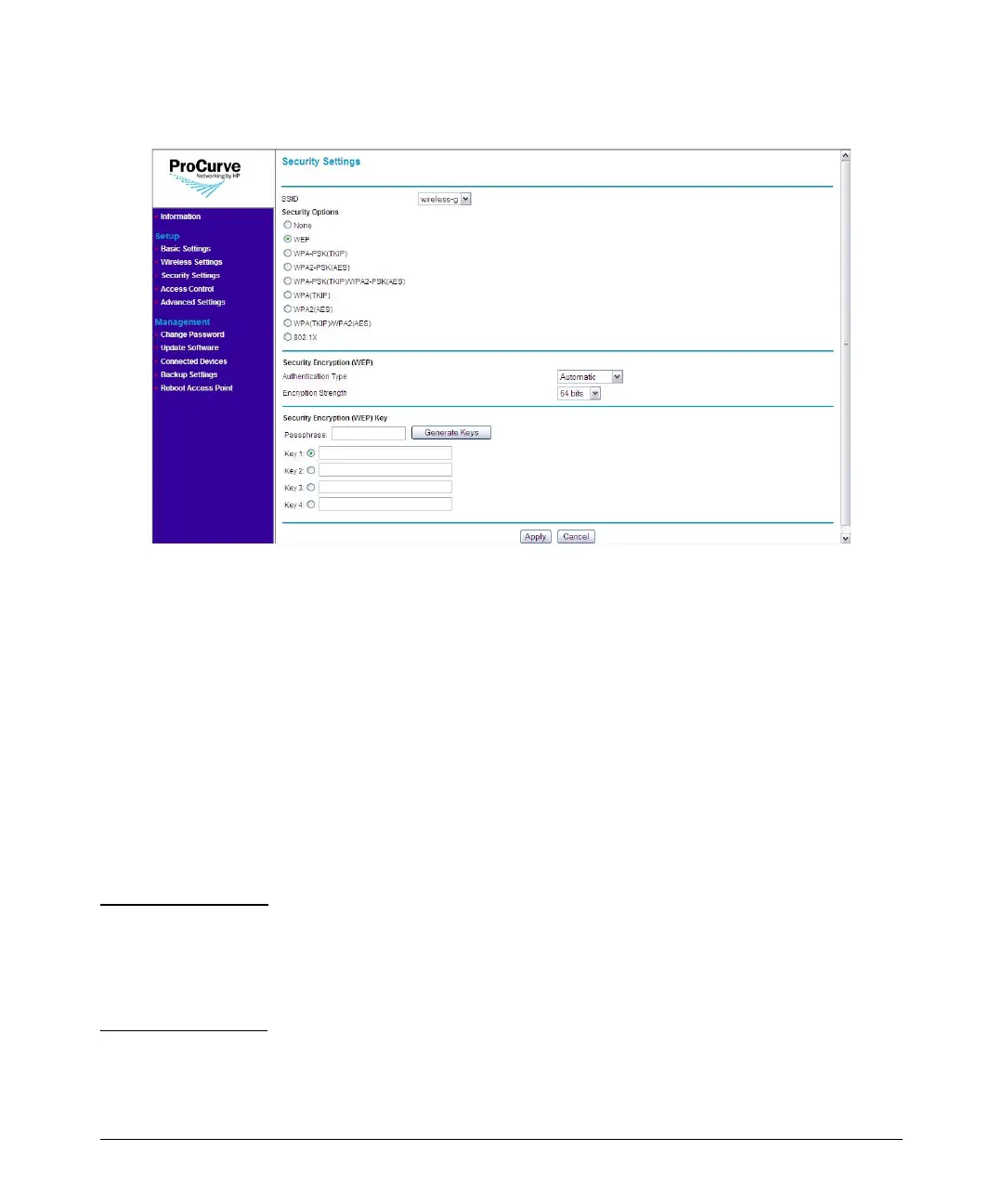 4. Under Security Encryption (WEP), configure the authentication type