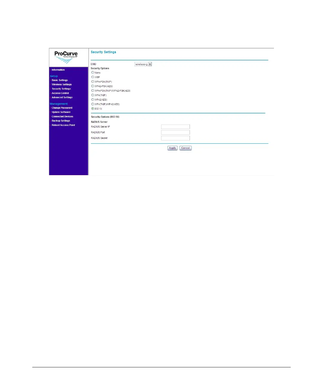4. Under Security Options (802.1X), configure the RADIUS server settings: