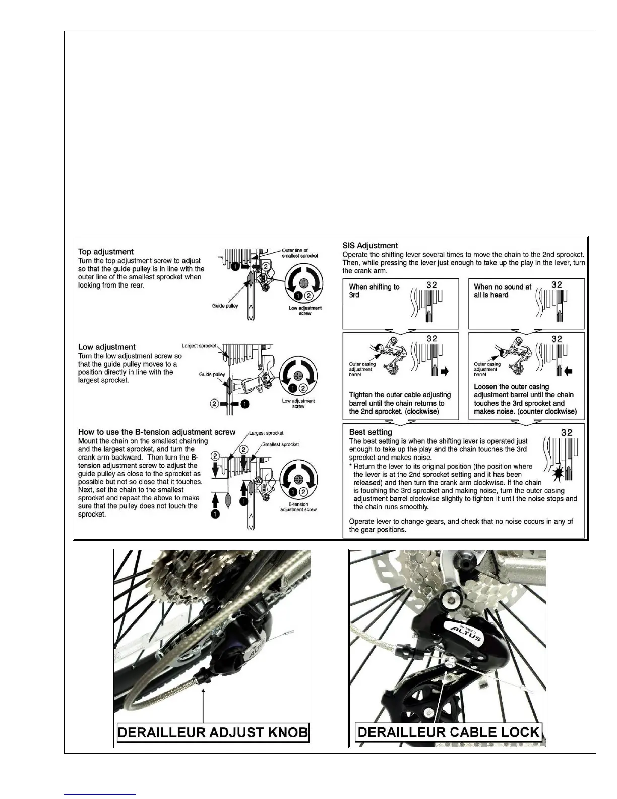 derailleur is properly changing gears. This is a quick fix but for a correct adjustment, the adjustment should