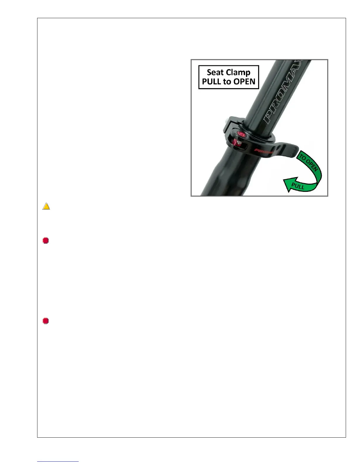 be clamped below this mark. This mark must be inserted into the frame pass the top of quick release clamp. If clamping