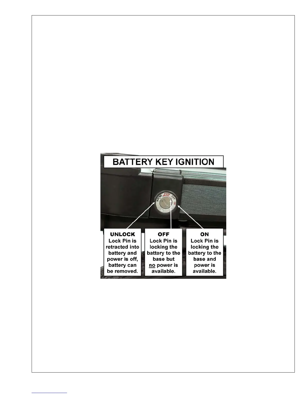 Locate the key ignition on the battery base and turn the key in a counter clockwise rotation to the
