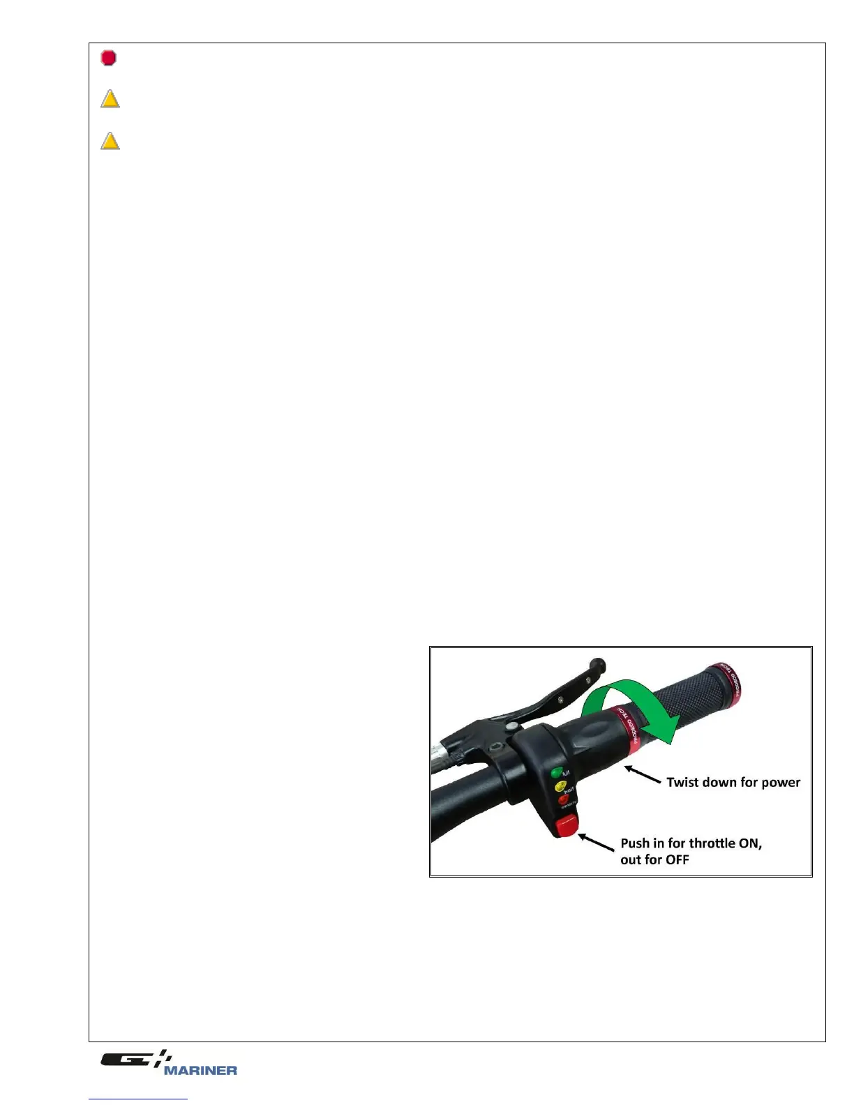 Before your first ride study this manual in its entirety. Make sure you are comfortable and confident when sitting on the