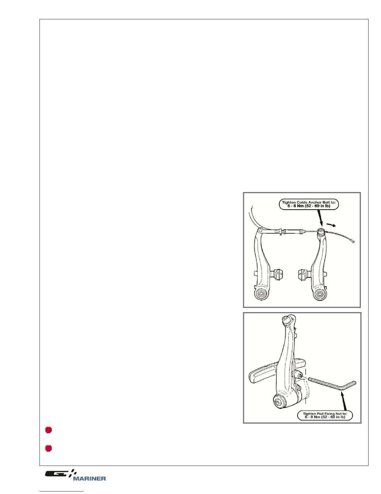 when the brake lever is released. If necessary, repeat pad adjustments. Note: new cables will stretch and require adjustment.