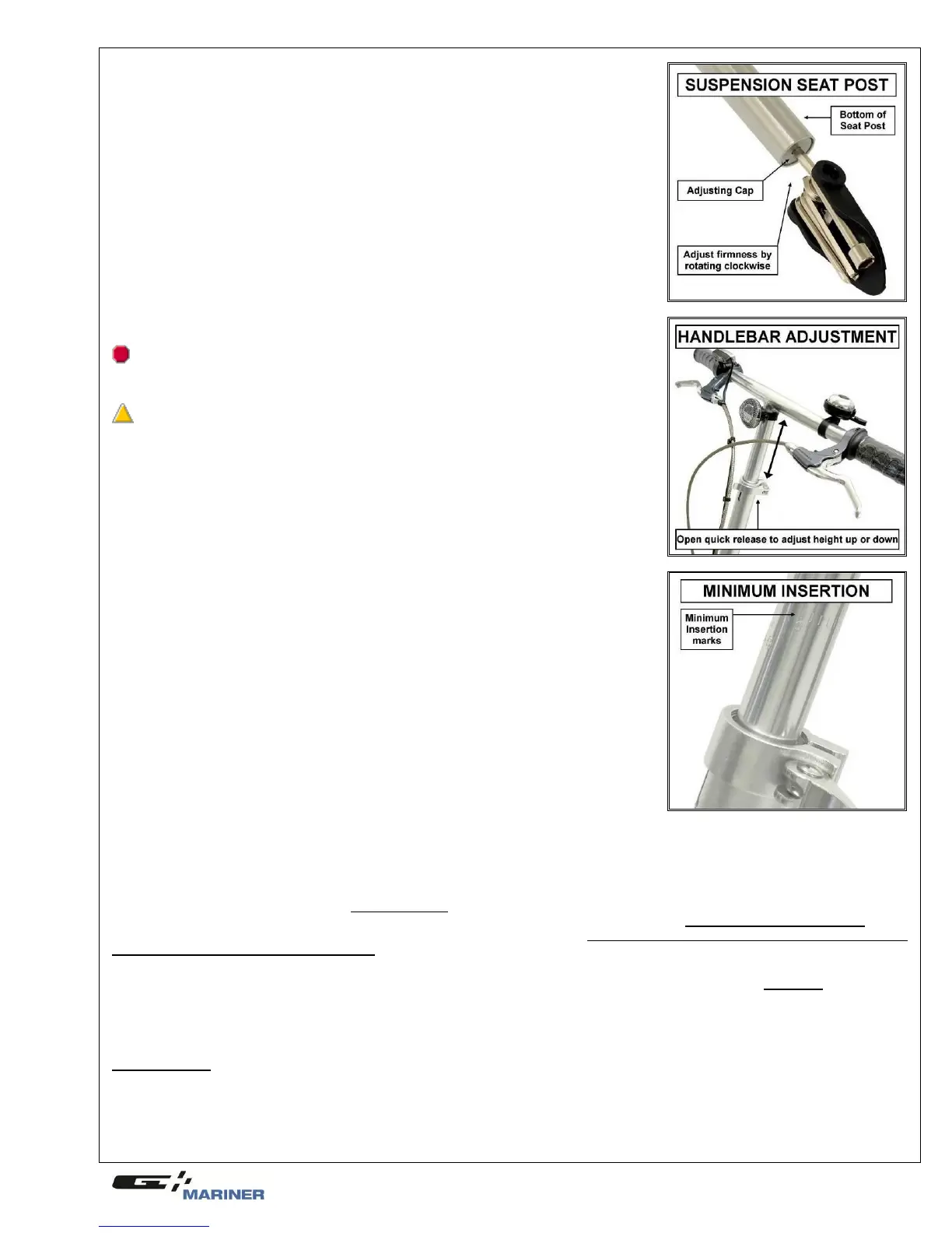 WARNING: The handlebar includes a minimum insertion mark. It is