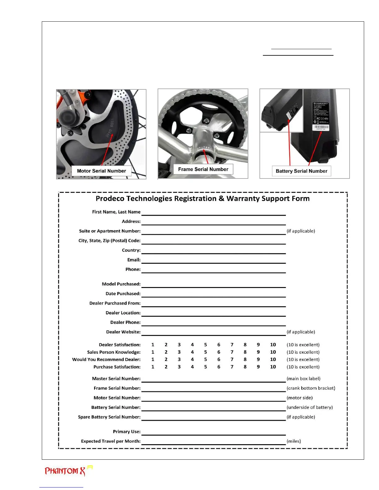 Prodeco Technologies Phantom X R - Registering your bike; Serial numbers and where to find them