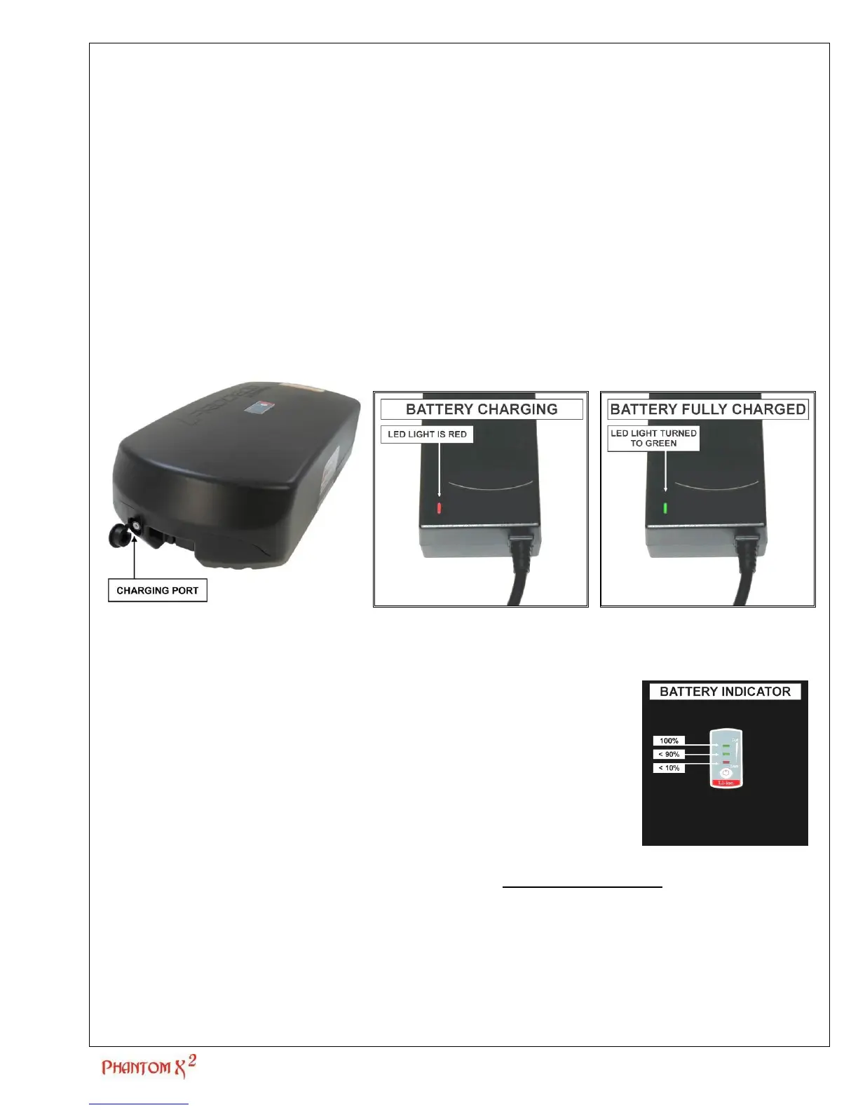 The Phantom X2 has a 3 LED light indicator on the handlebar throttle displaying the
