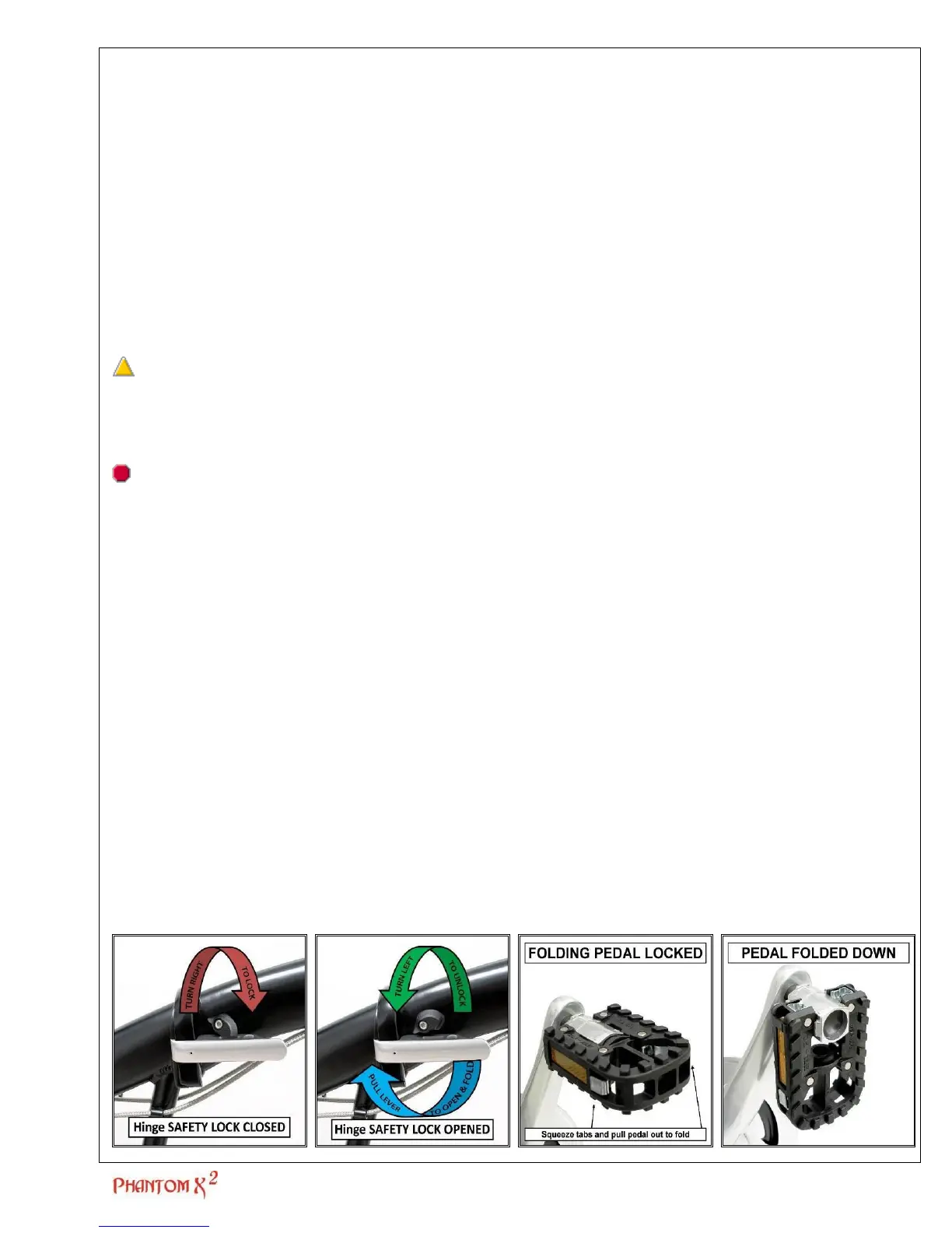 outside edges of each pedal, pulling the pedal outwards and then pushing the pedal down. To fold the bicycle you