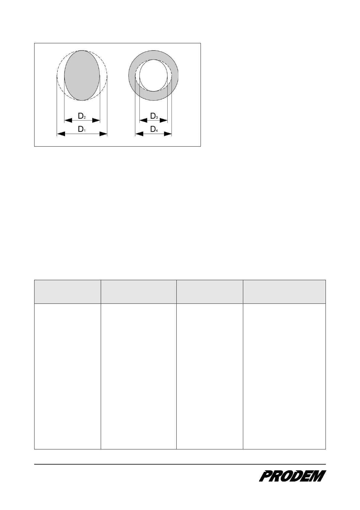 Initial diameter (D1) for the chisel is shown in the following table. The chisel diameter should be measured in