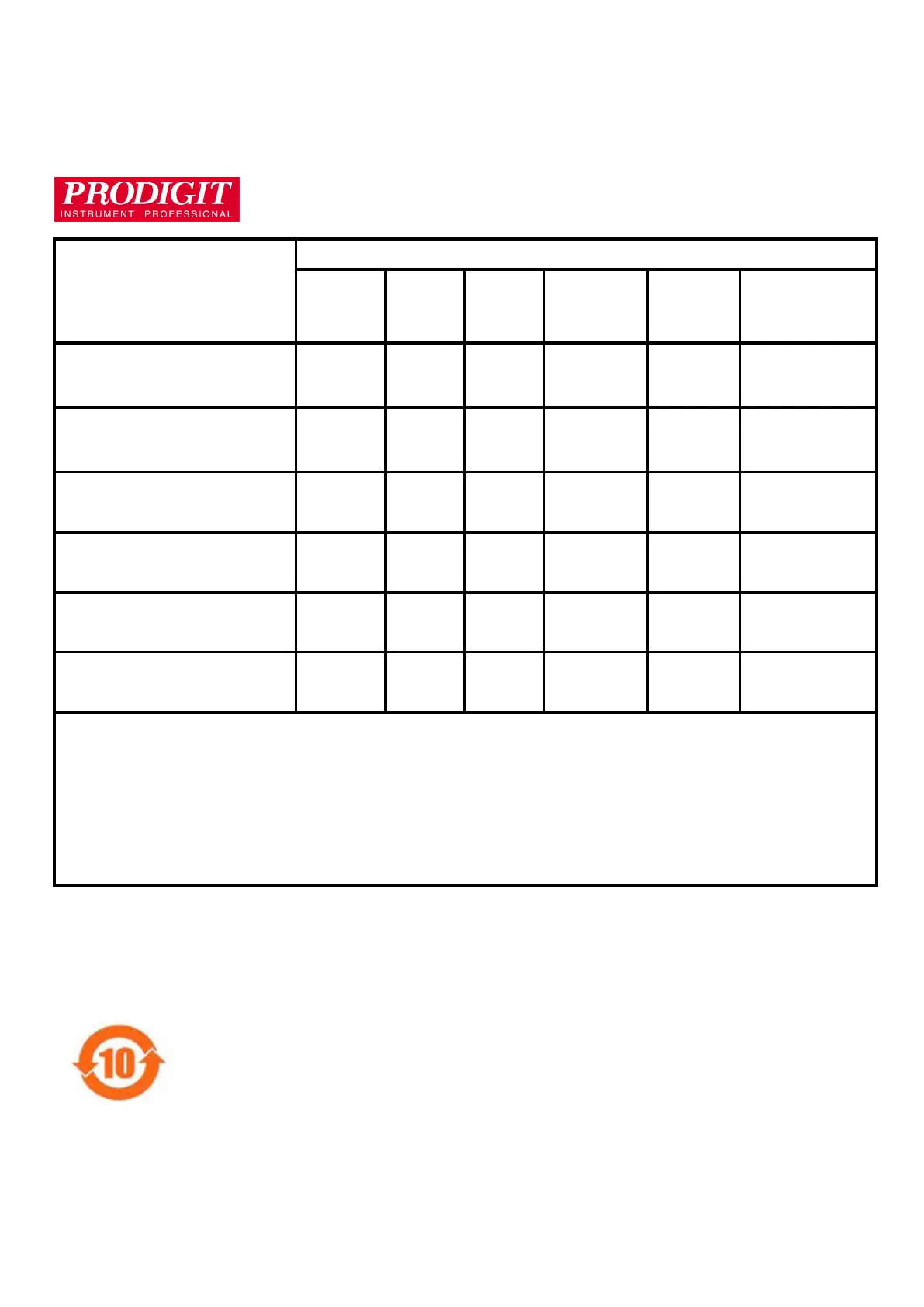 能不会含有所有所列的部件。This table shows where these substances may be found in the supply chain of Prodigit