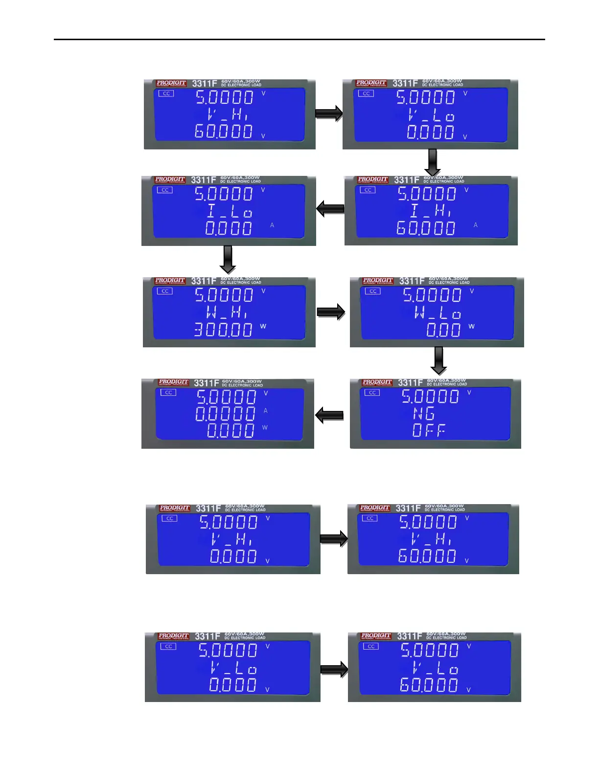 Setting Upper limit voltage VH , Middle 5 digit LCD display「V-Hi」,lower 5