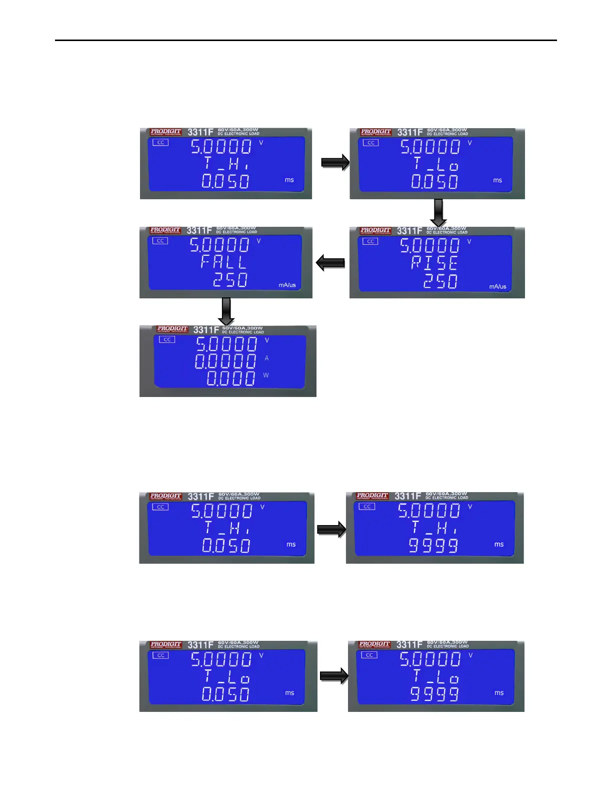 Lower 5 digit LCD display will show setting value, the unit is “ms” , The T-Hi
