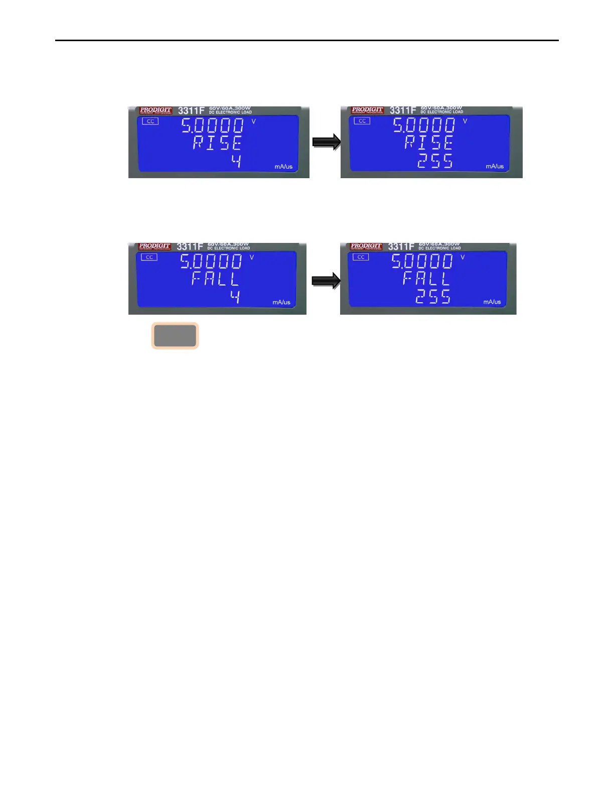 digit LCD display will show setting value, the unit is “mA/μs” , The FALL