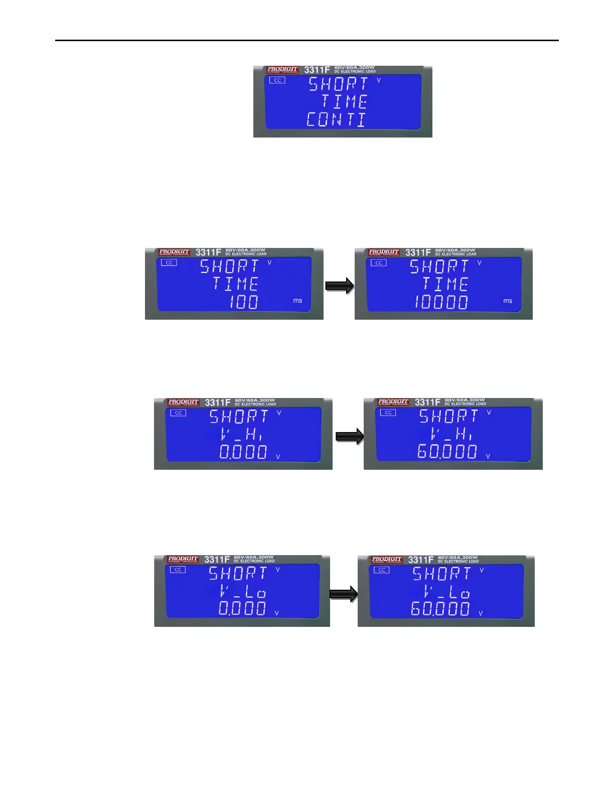 TIME: setting the short test time, The LCD display show 「SHORT」 on