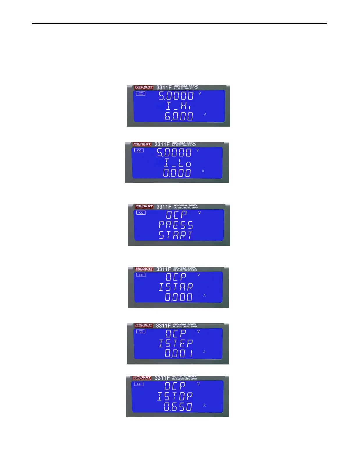 4.11.1.3. Setting OCP test, press OCP key to the next step.
