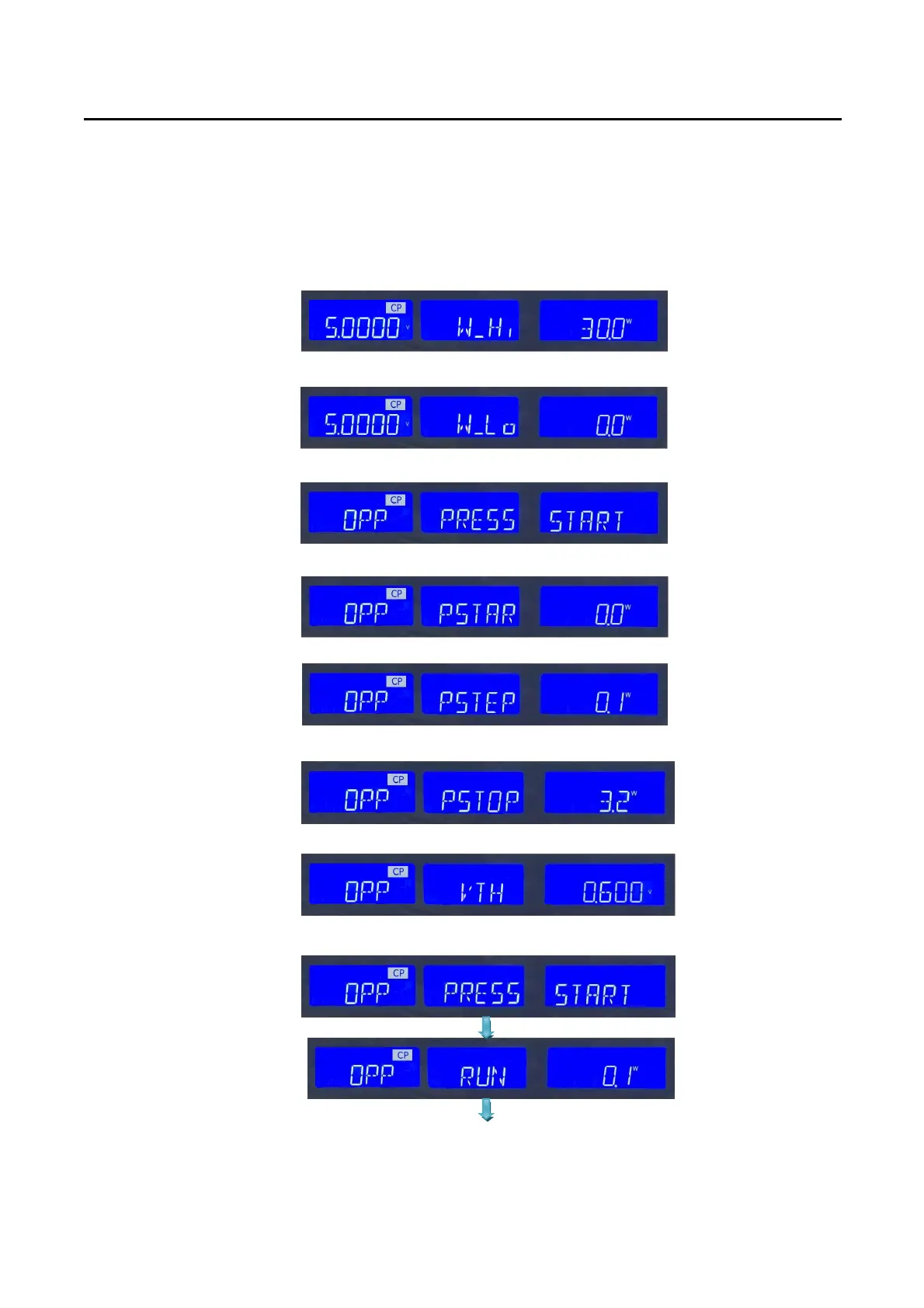 5.11.1.5. Press up key, set step load watt 0.1W, press OPP key to the next step.