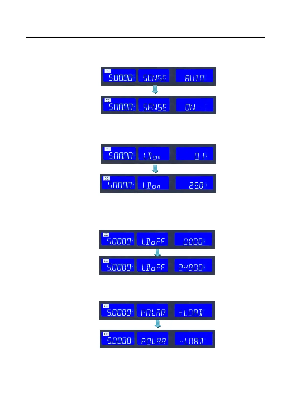 Set Load ON voltage, the middle of the 5 digit LCD display will show "LDon", right 5