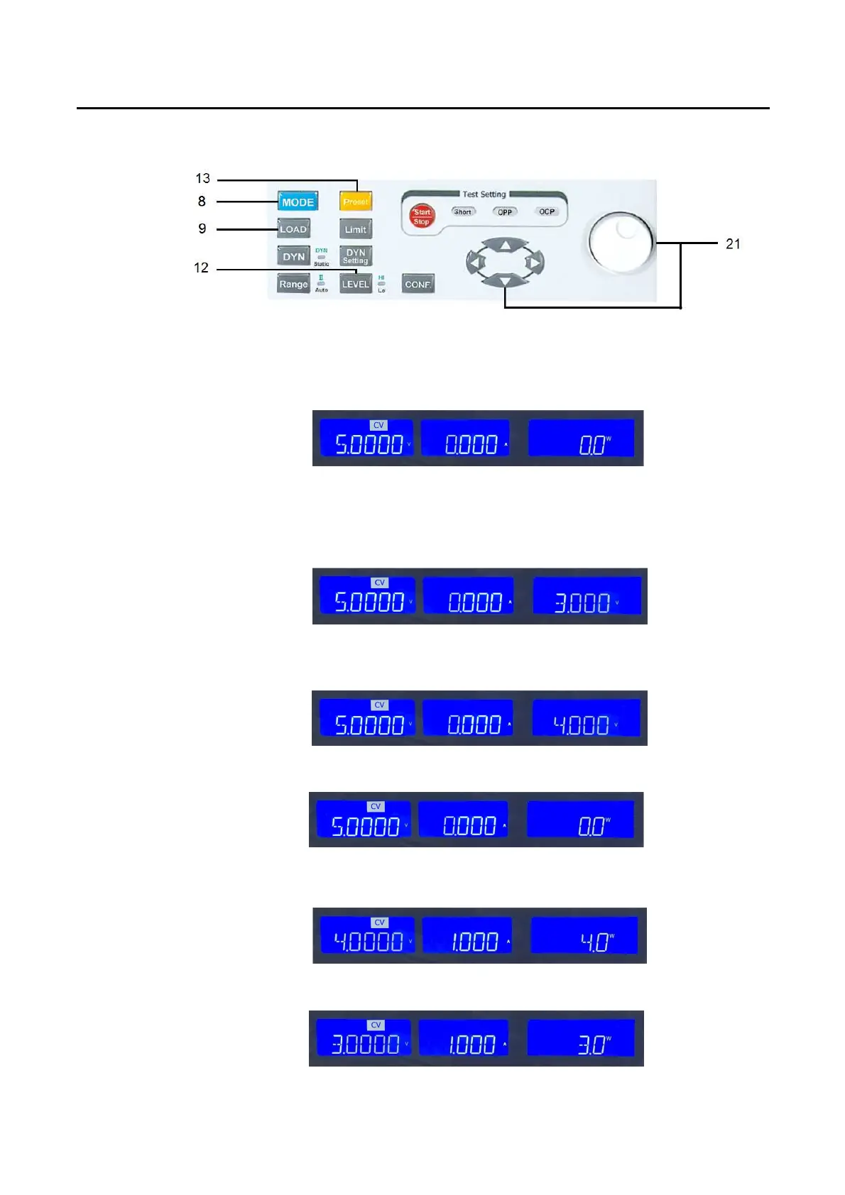 5.4.3.4. Pressing the “LOAD “Key (9) LOAD button lit (Load on), Pressing the "LEVEL"
