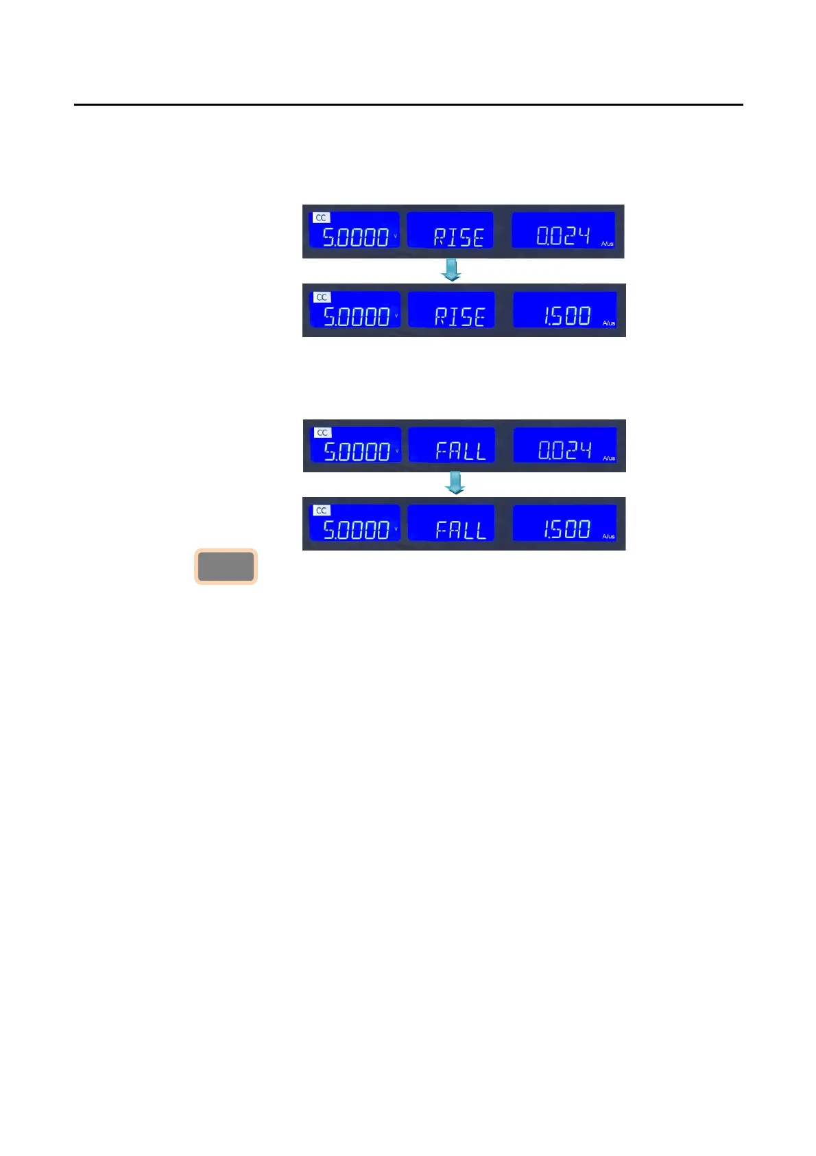Display will show setting value, the unit is “A/µs”, The FALL time set range from 0.024