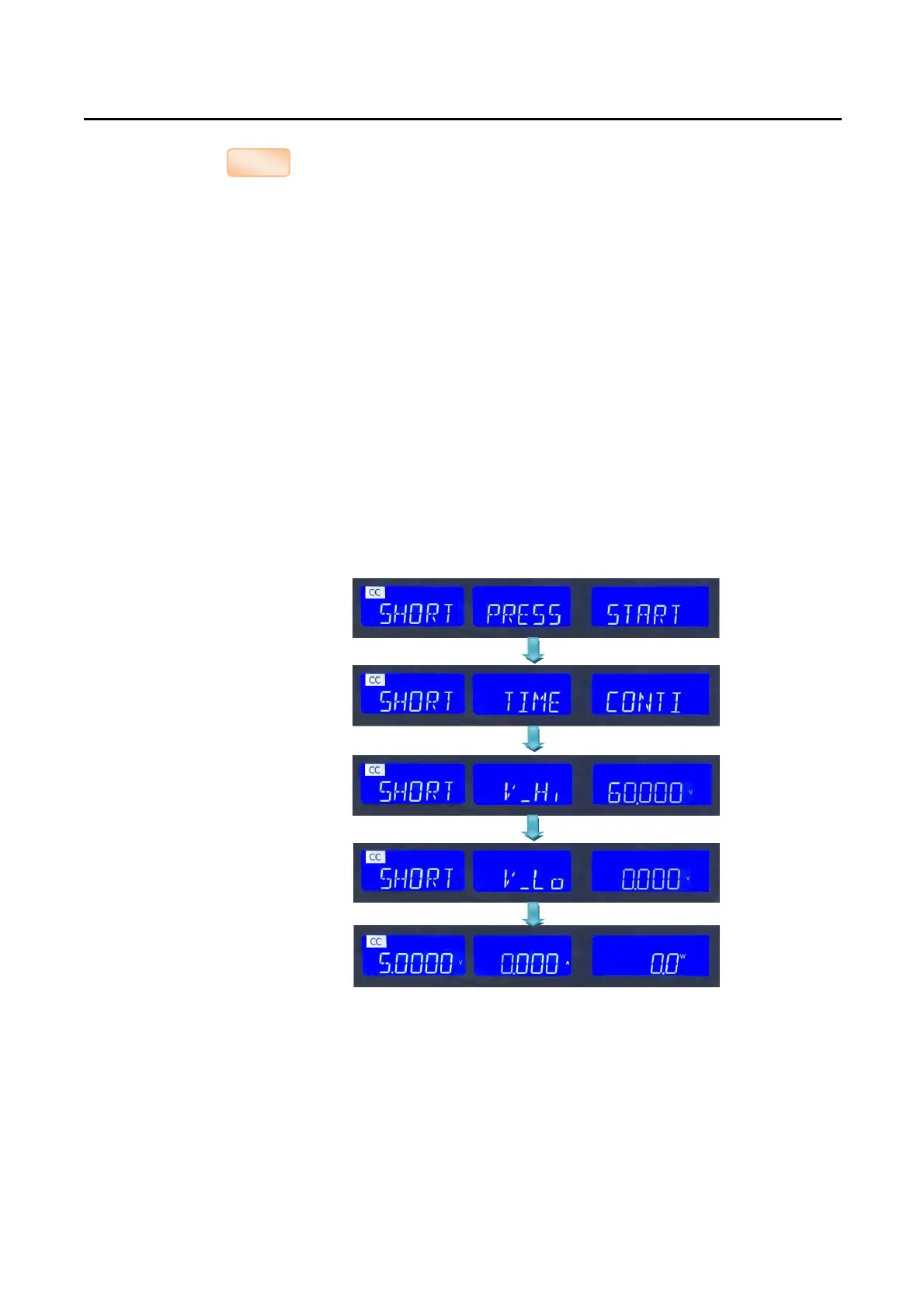 The SHORT key allows the parameters of a SHORT circuit test to be entered. The