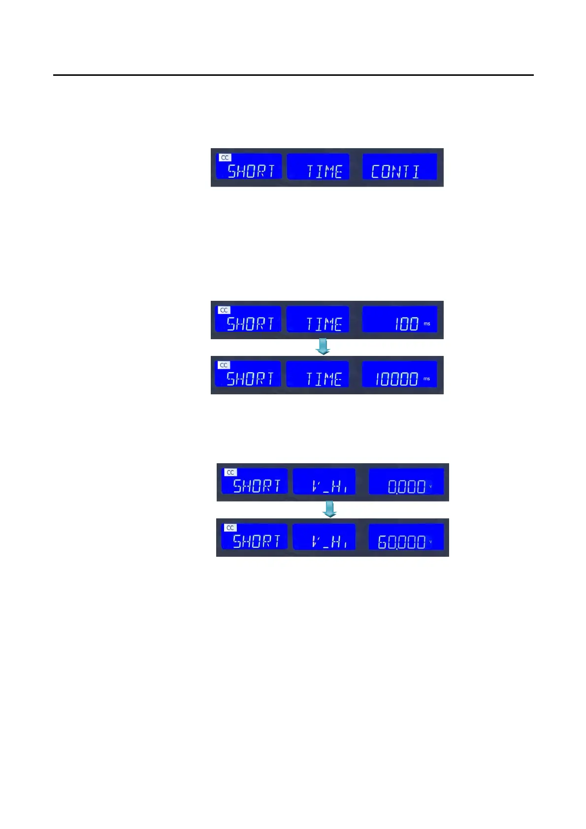 Setting the short test time,The LCD display show 「SHORT」 on left 5 digits