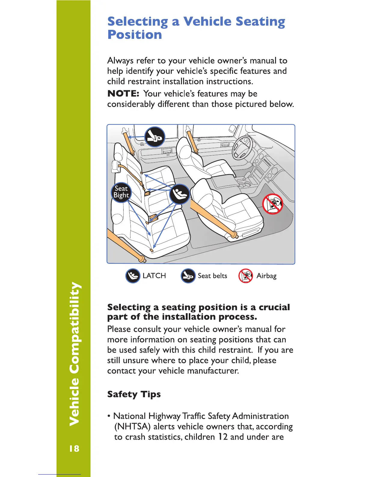 Prodigy Summer - Vehicle Compatibility; Selecting a Vehicle Seating Position