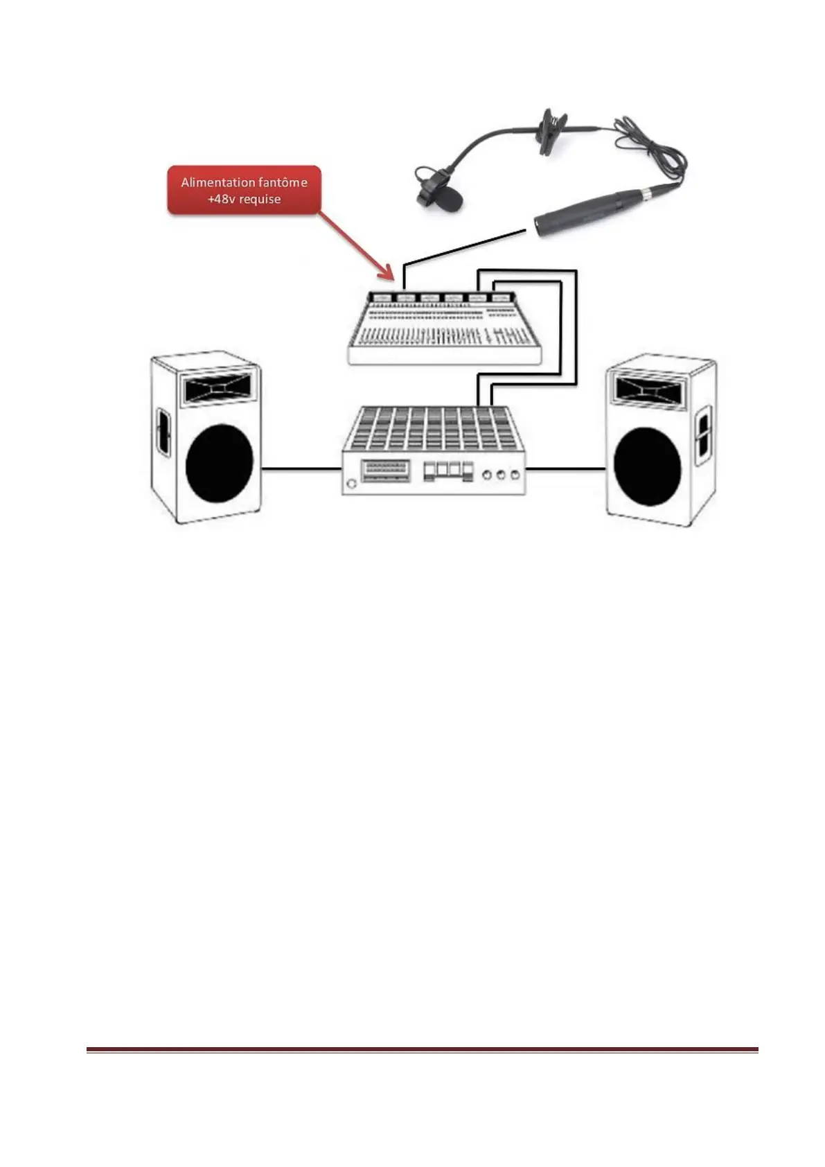 A l'aide d'un cordon XLR/XLR (non fourni) connectez votre micro à une console de mixage ou