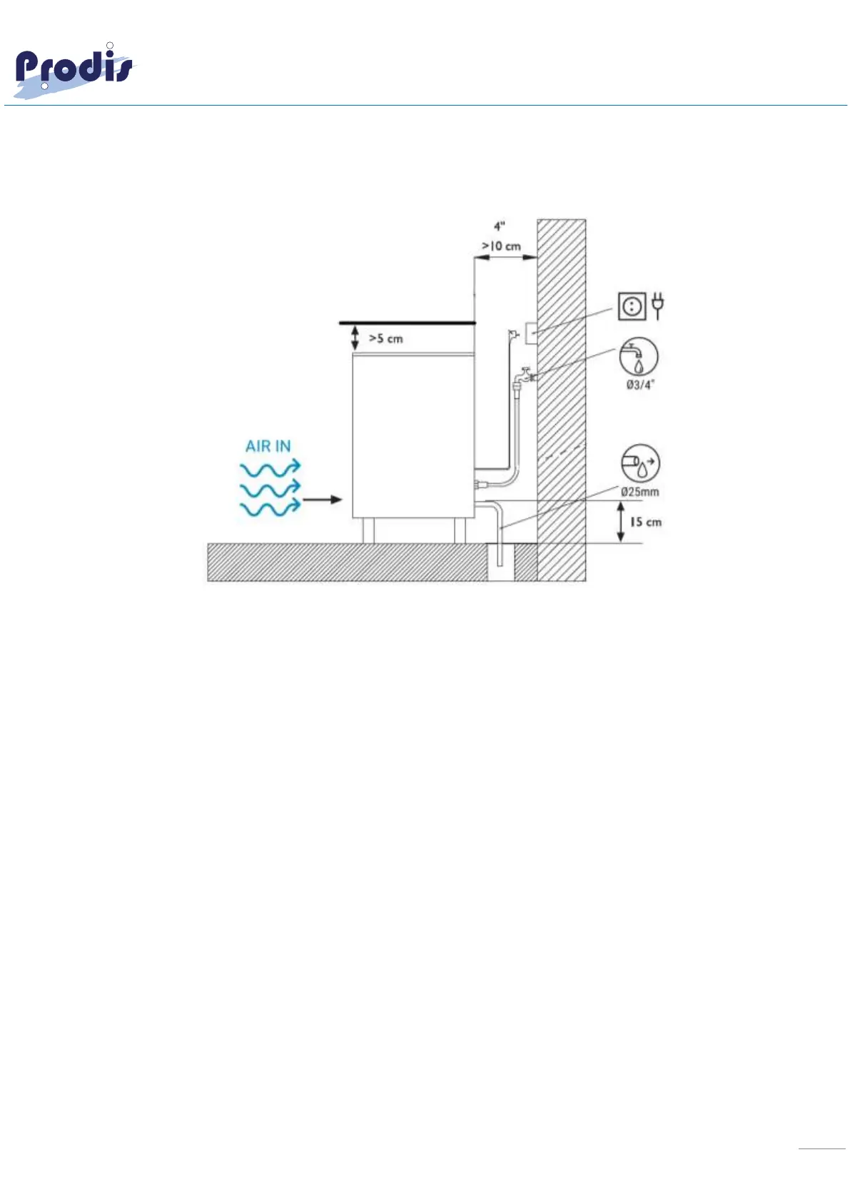 It is convenient that the drain hose is 30mm inside diameter and with a minimum gradient of 3cm/metre,