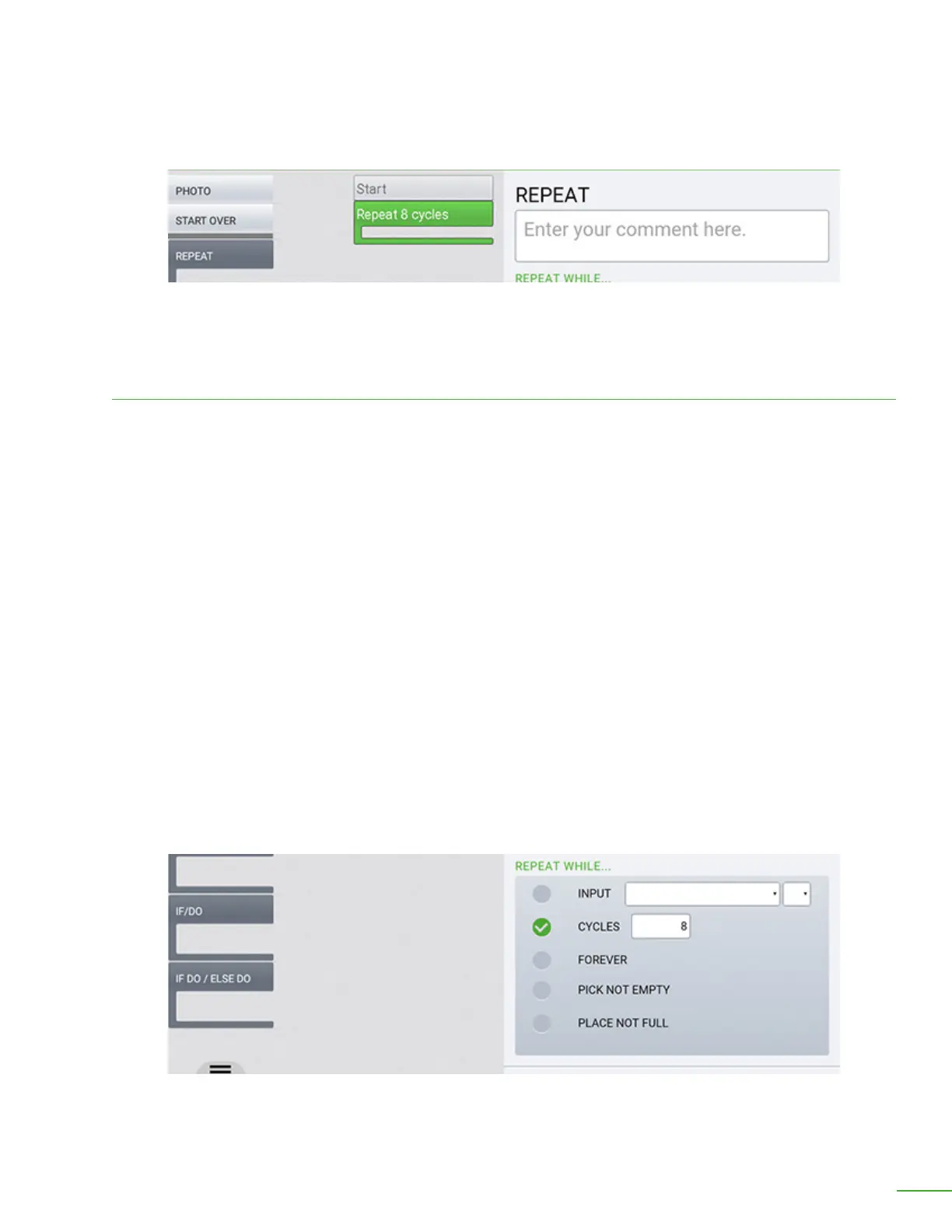 Repeat while Cycles: OB7 will simply repeat this portion of the job for as many cycles as you specify.