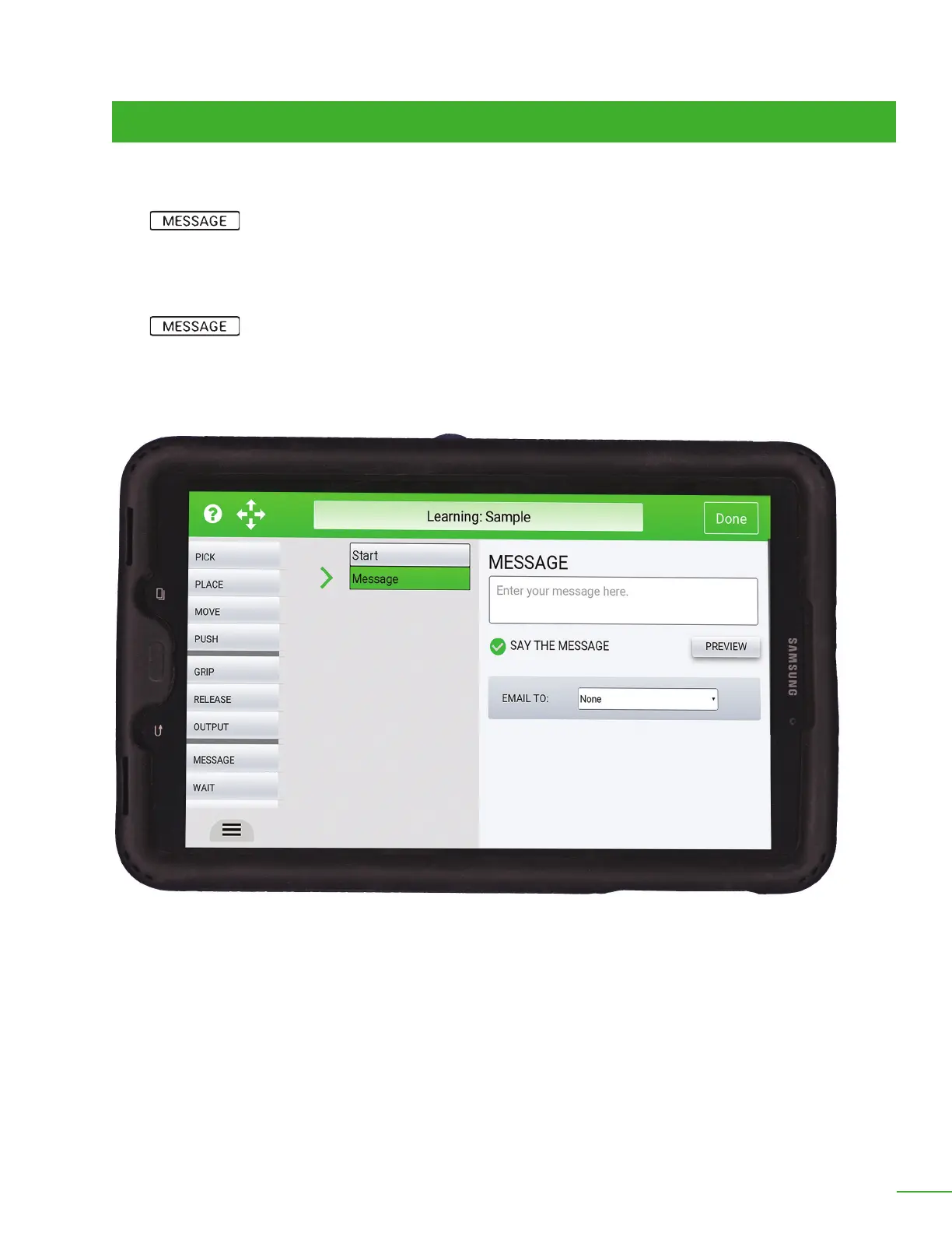 on the tablet, Spoken from the tablet, or emailed. The message will display on the tablet until an