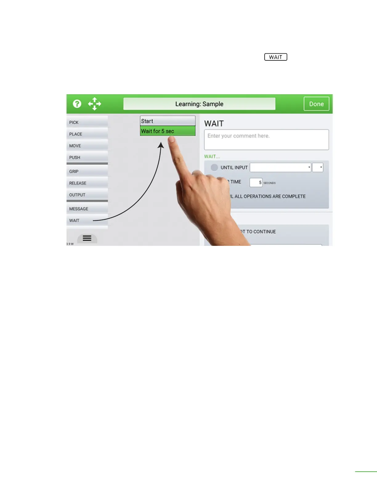 pause and wait for something in the middle of a job, you would add the “Wait” tile.
