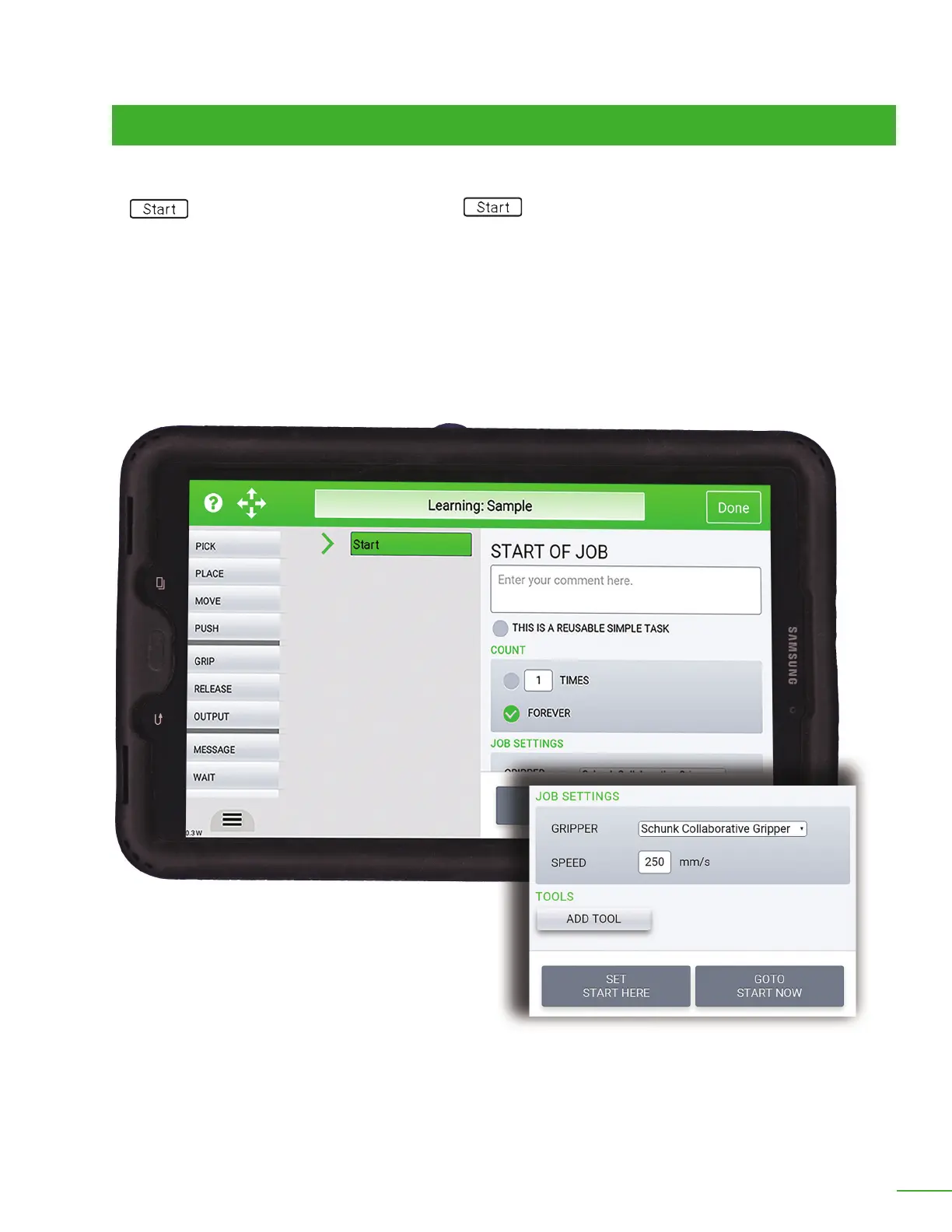 A START tile is the rst tile in every job. The Start tile holds the general information for this job.